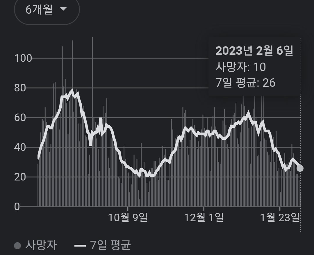 | 코로나19집계(2023.2.6. 0시기준) 확진 +6천, 사망 +18명, 중환자병상가동률 27% (0) | 2023.02.06 |