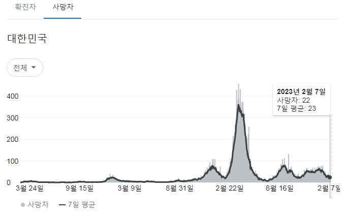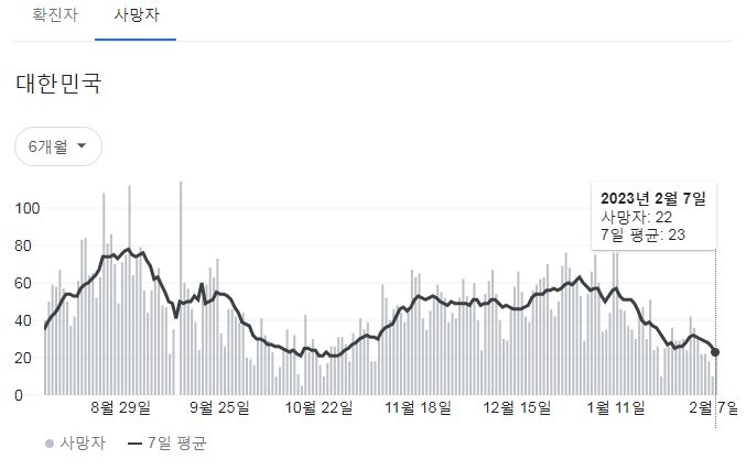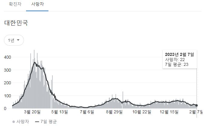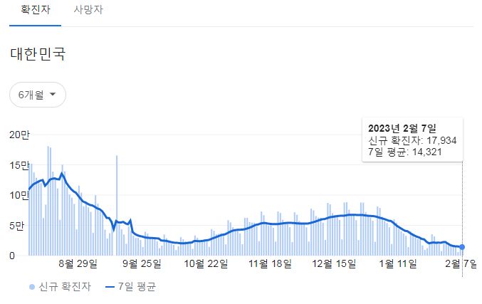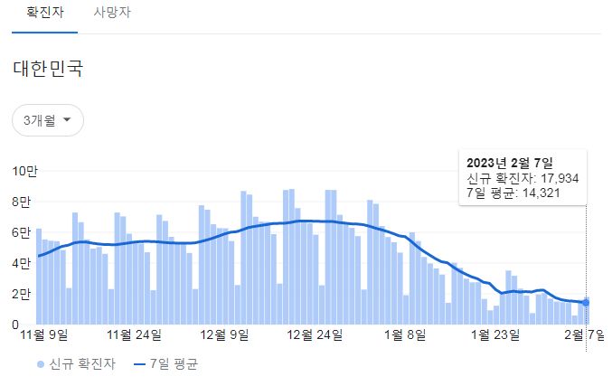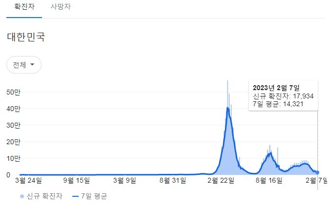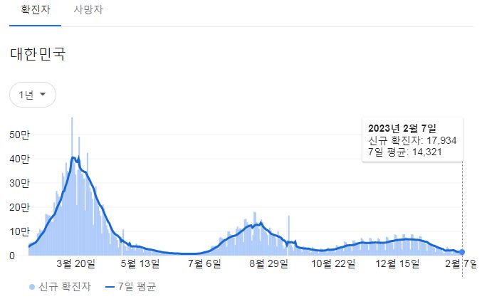 | 코로나19집계(2023.2.5. 0시기준) 확진 +1.4만, 사망 +22명 (0) | 2023.02.05 |