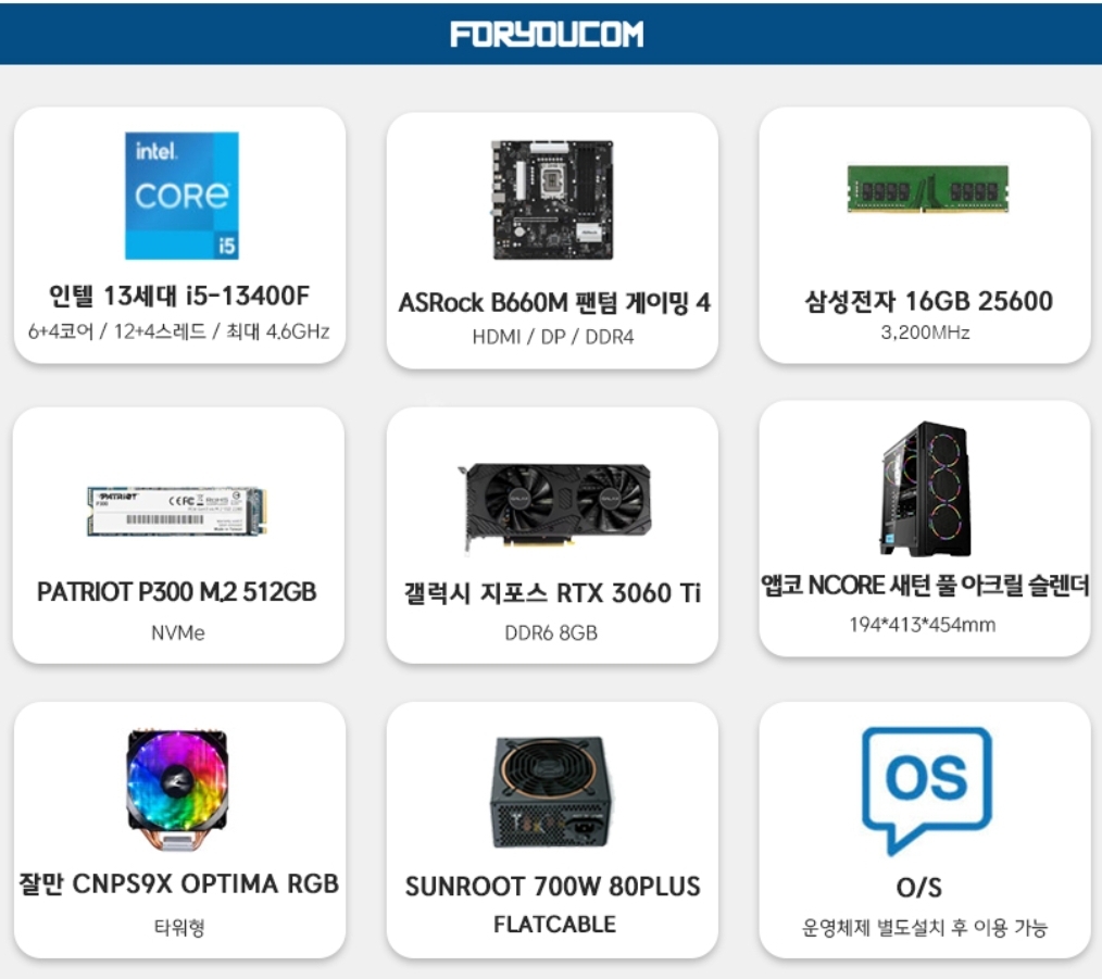 (지마켓) 인텔 i5-13400F + RTX 3060 Ti + 16GB 램 + 512GB SSD (~99.8만원/일반, 카드할인) 본문