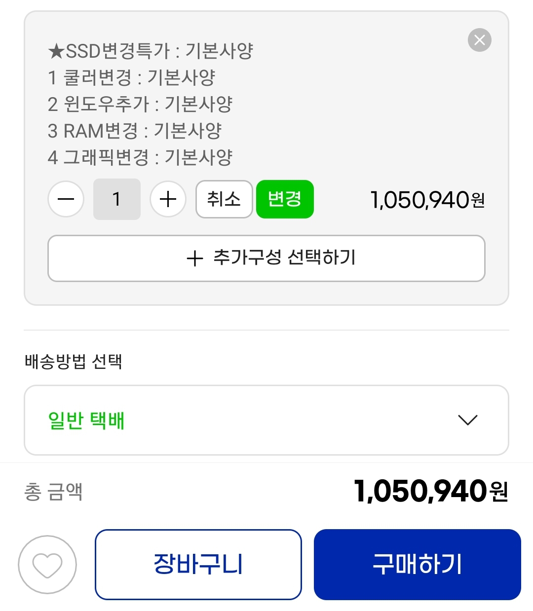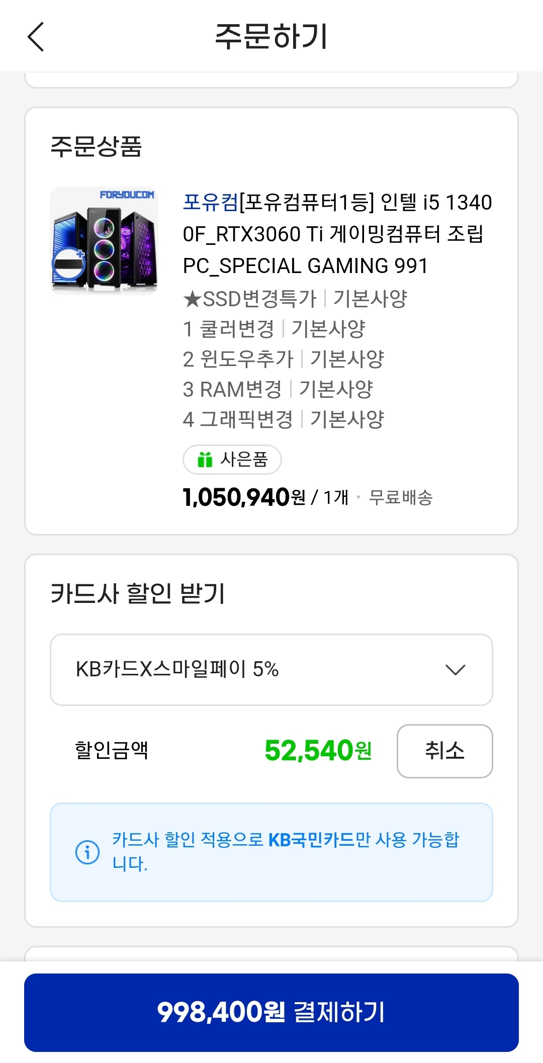 업글/변경없이 기본으로만 짜고 쿠폰 적용.