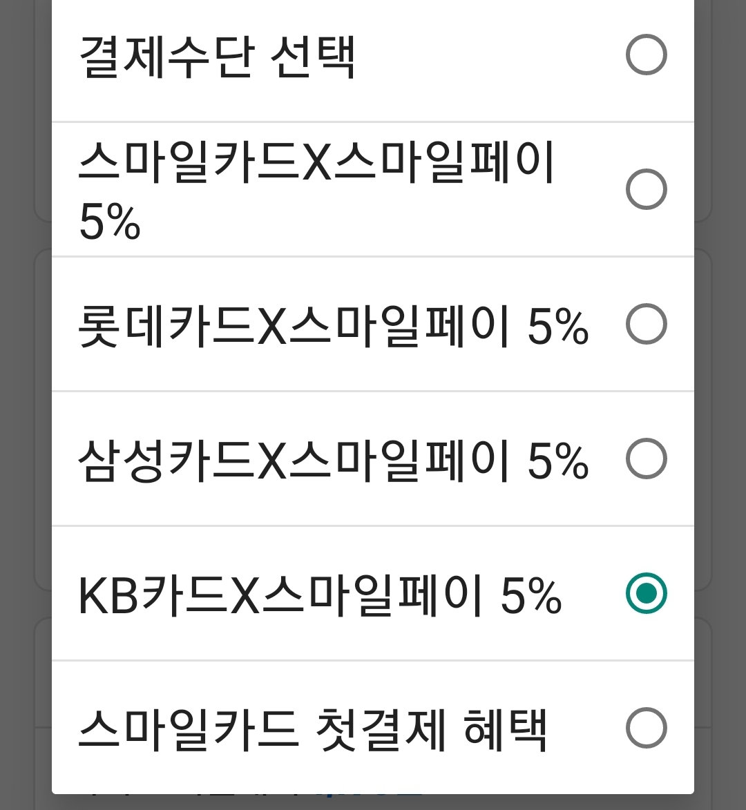 KB, 롯데, 삼성, 스마일카드가 추가할인됩니다.