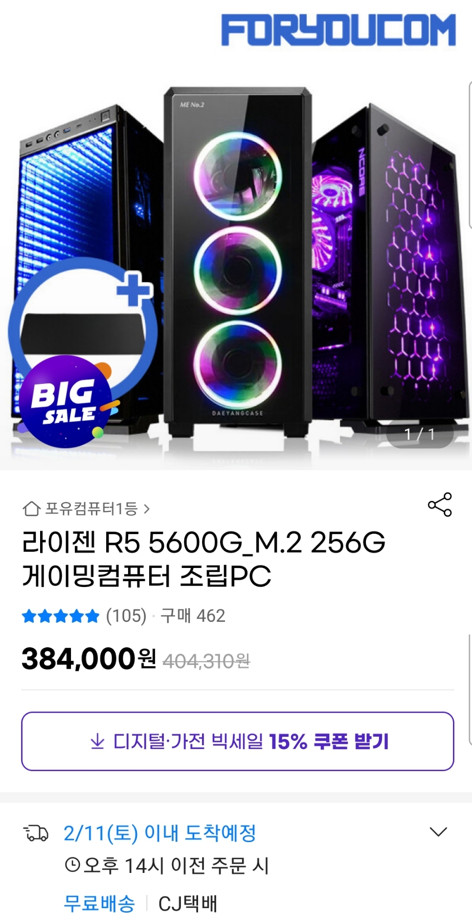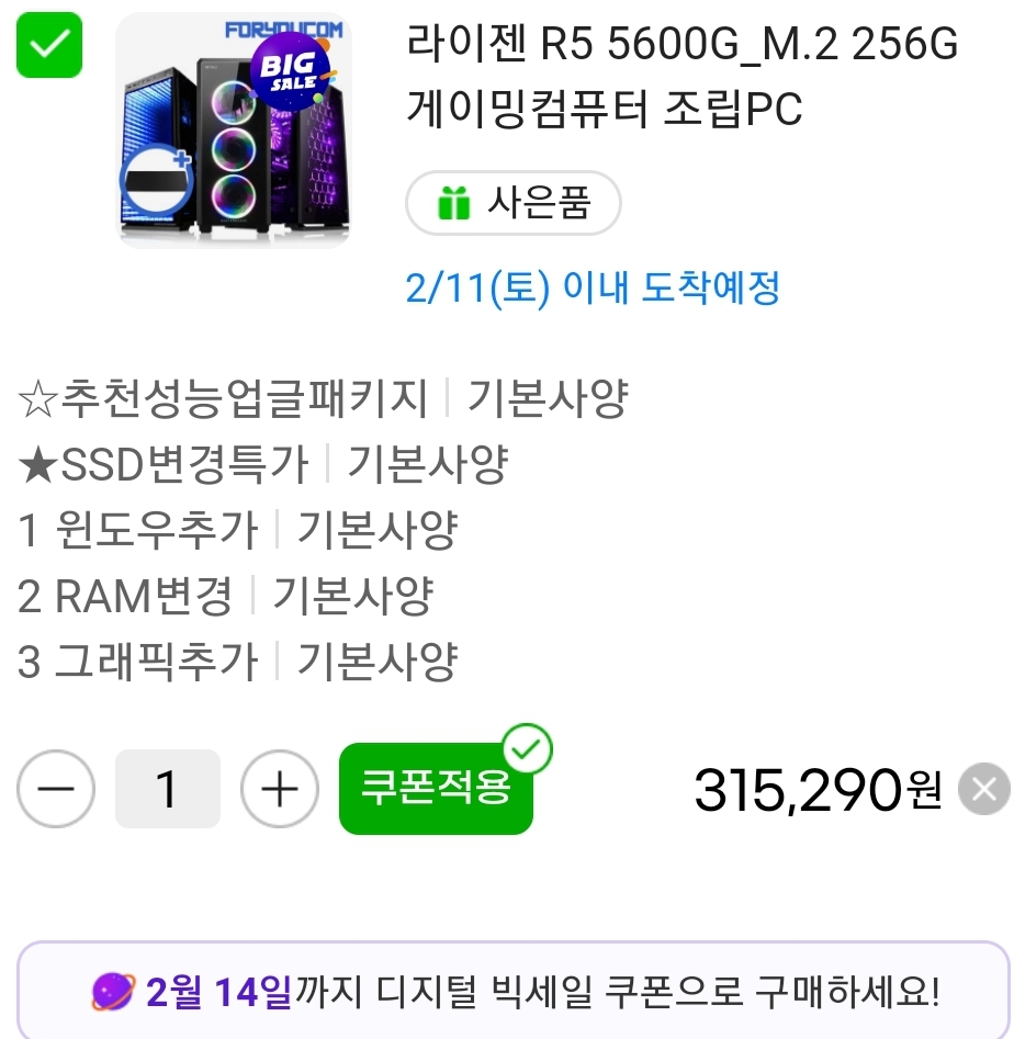 (지마켓) 라이젠 5600G + 8GB 램 + 256GB SSD (~31.5만/일반) 본문