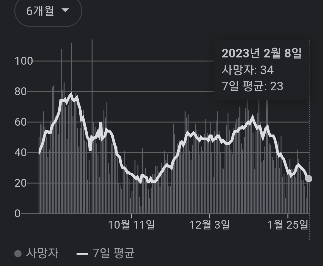 | 코로나19집계(2023.2.6. 0시기준) 확진 +6천, 사망 +18명, 중환자병상가동률 27% (0) | 2023.02.06 |
