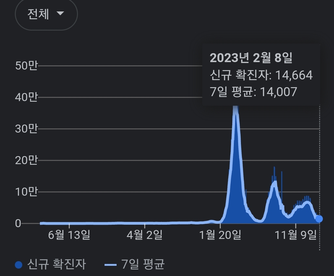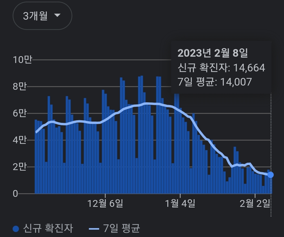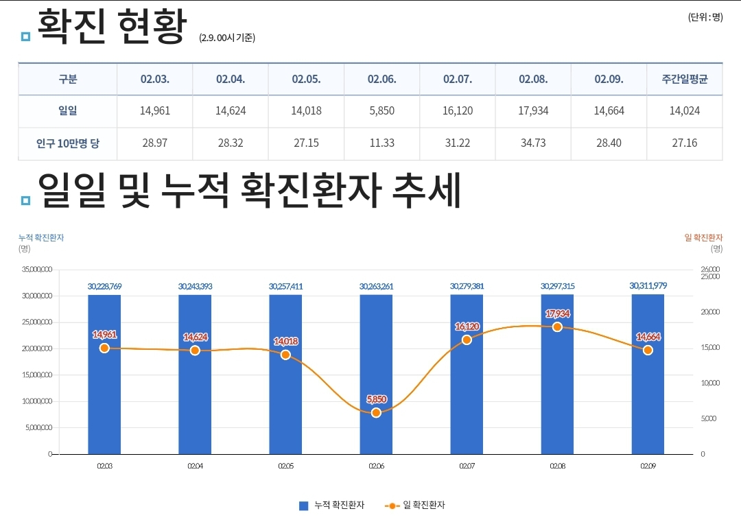 코로나19집계(2023.2.9. 0시기준) 확진 +1.5만, 사망 +34명, 중환자병상가동률 24% 본문