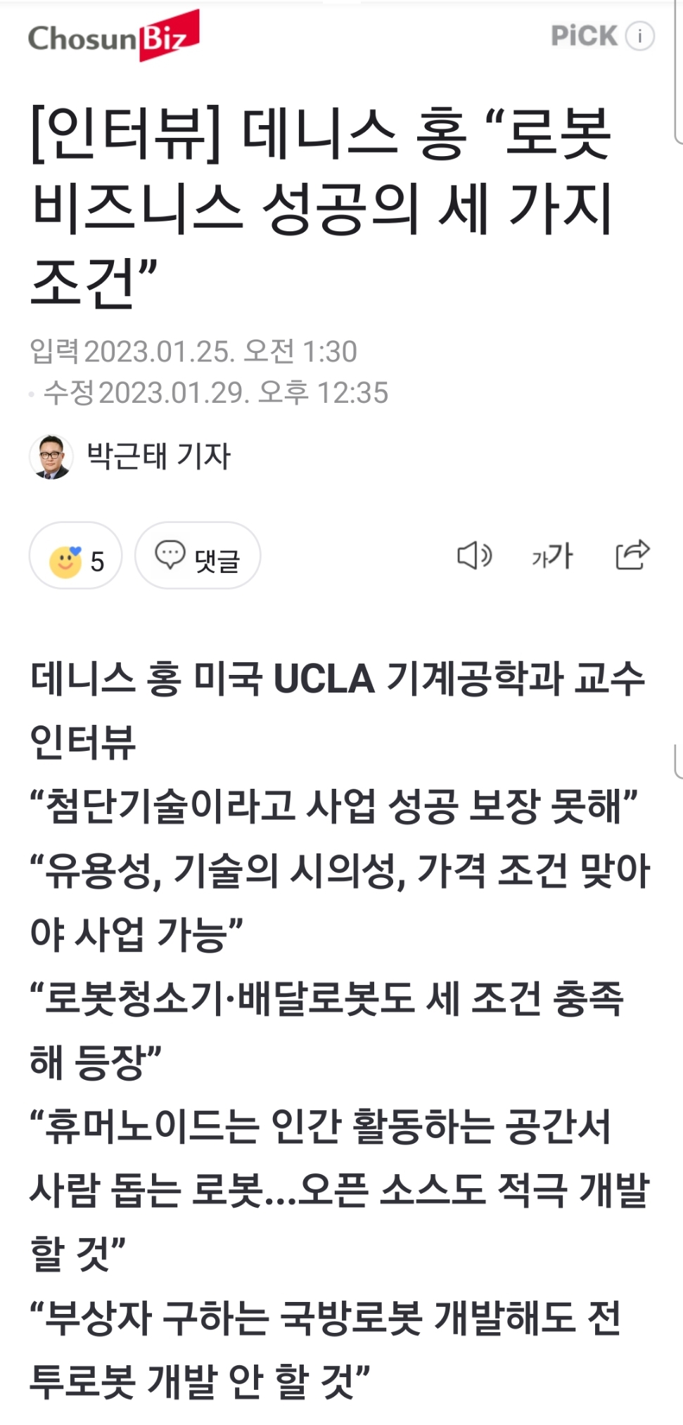 ”로봇 사업이 성공하려면 유용하고 기술이 존재해야 하며 너무 비싸지 않아야 하는 세 가지 조건을 충족해야 한다”