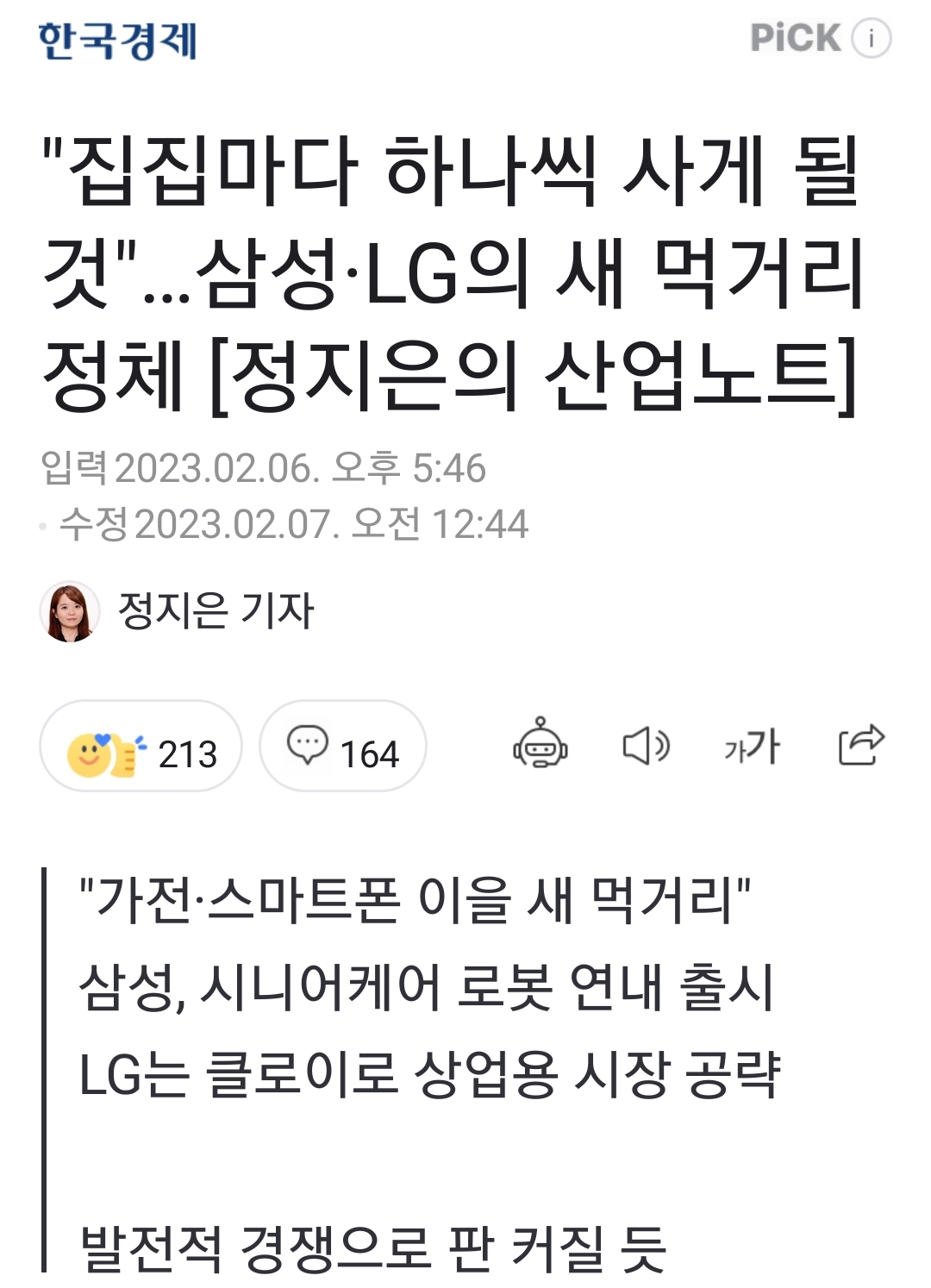 "집집마다 하나씩 사게 될 것"…삼성·LG의 새 먹거리 정체 [정지은의 산업노트]