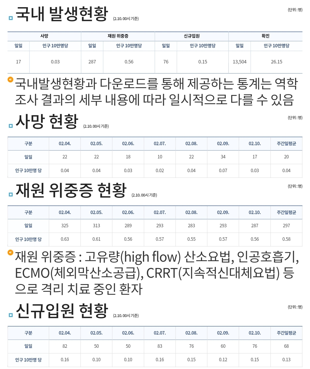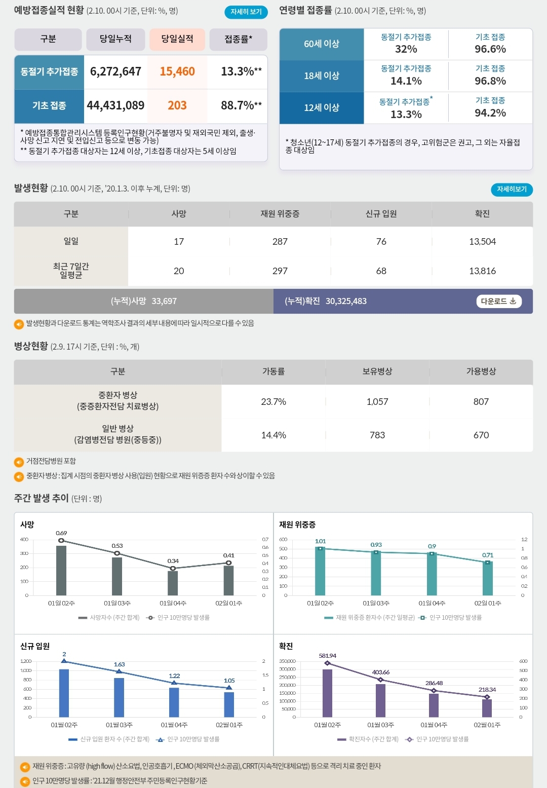 코로나19집계(2023.2.10. 0시기준) 확진 +1.4만, 사망 +17명, 중환자병상가동률 24% 본문