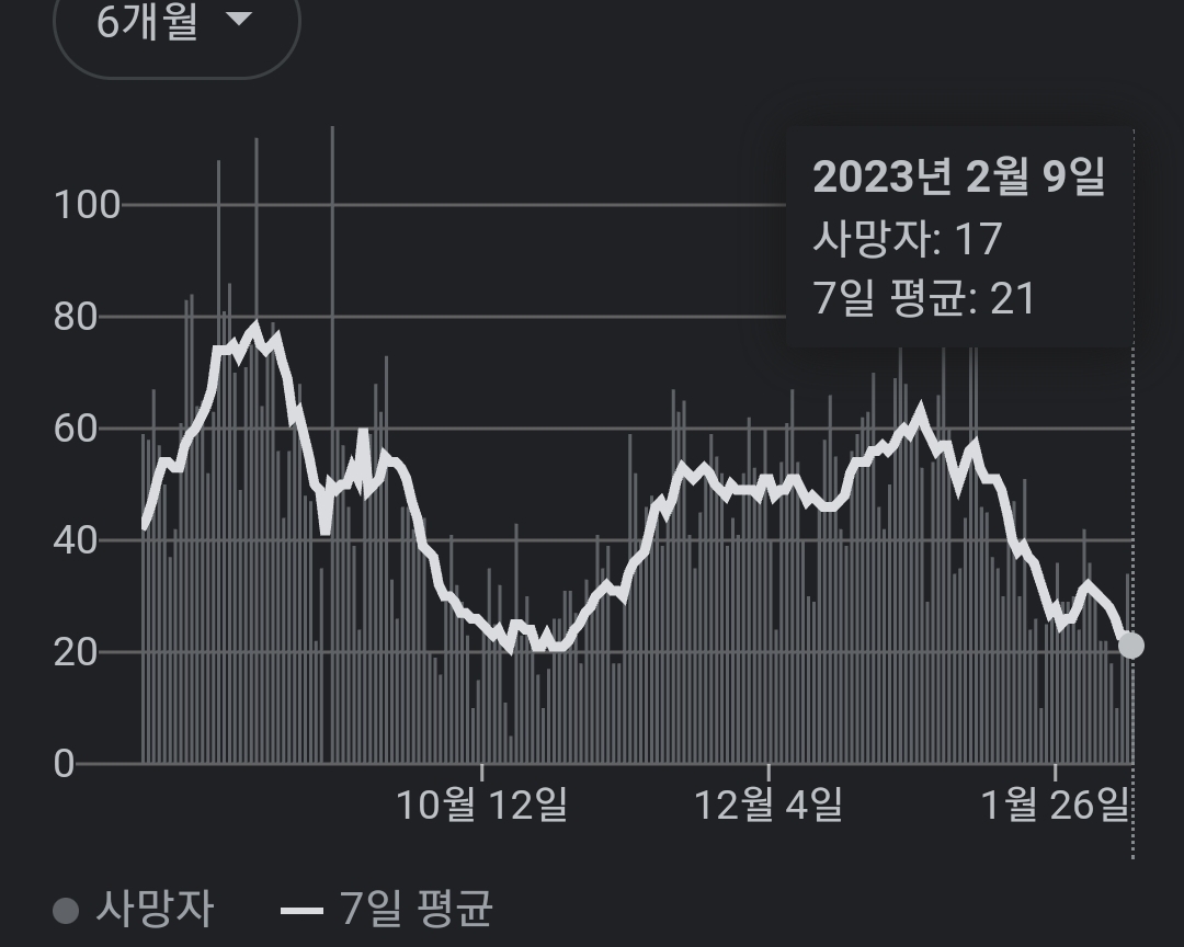 | 코로나19집계(2023.2.9. 0시기준) 확진 +1.5만, 사망 +34명, 중환자병상가동률 24% (0) | 2023.02.09 |