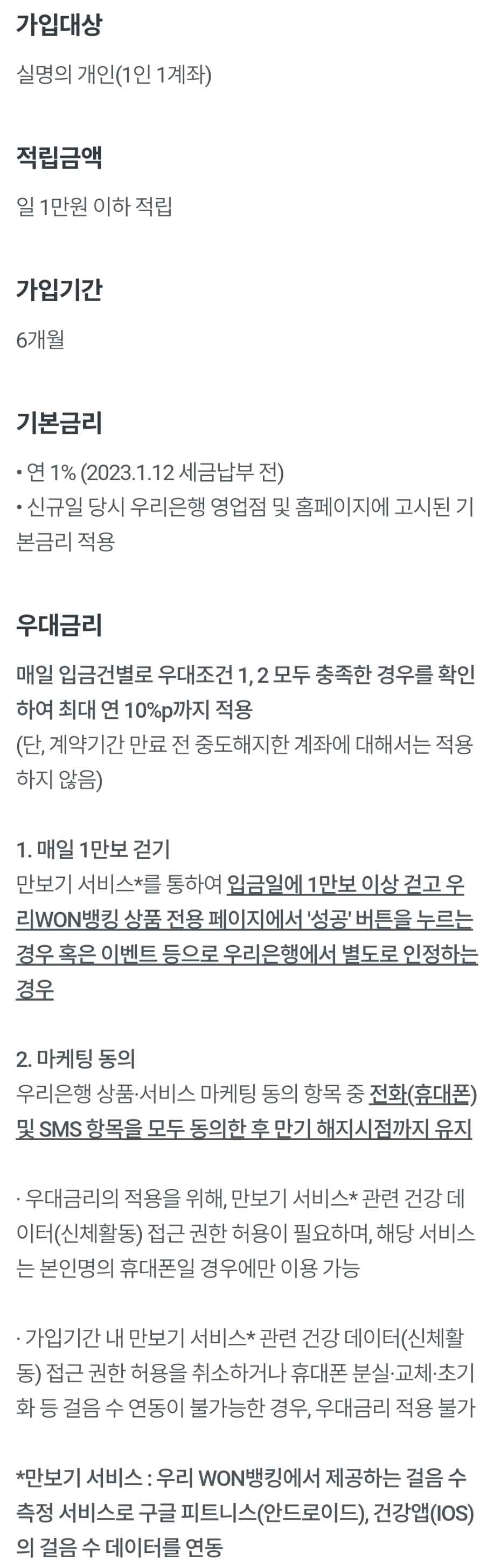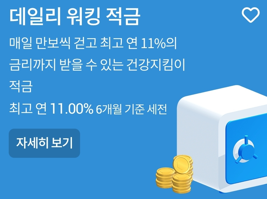 우리은행 데일리 워킹 적금(하루 1만 보 걸으면 그날은 11%이자) 본문