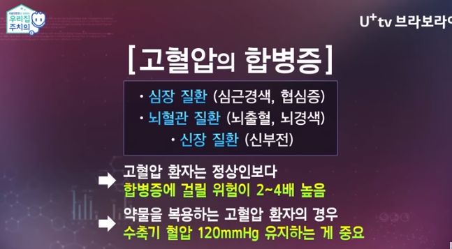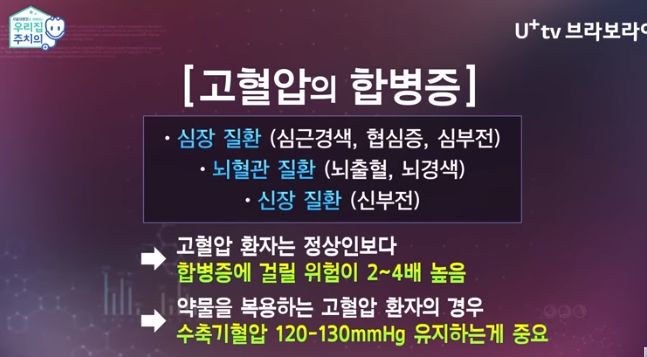 혈압으로 인행 동반되는 다른 질환이 발생할 위험을 줄이는 게 목적이다.