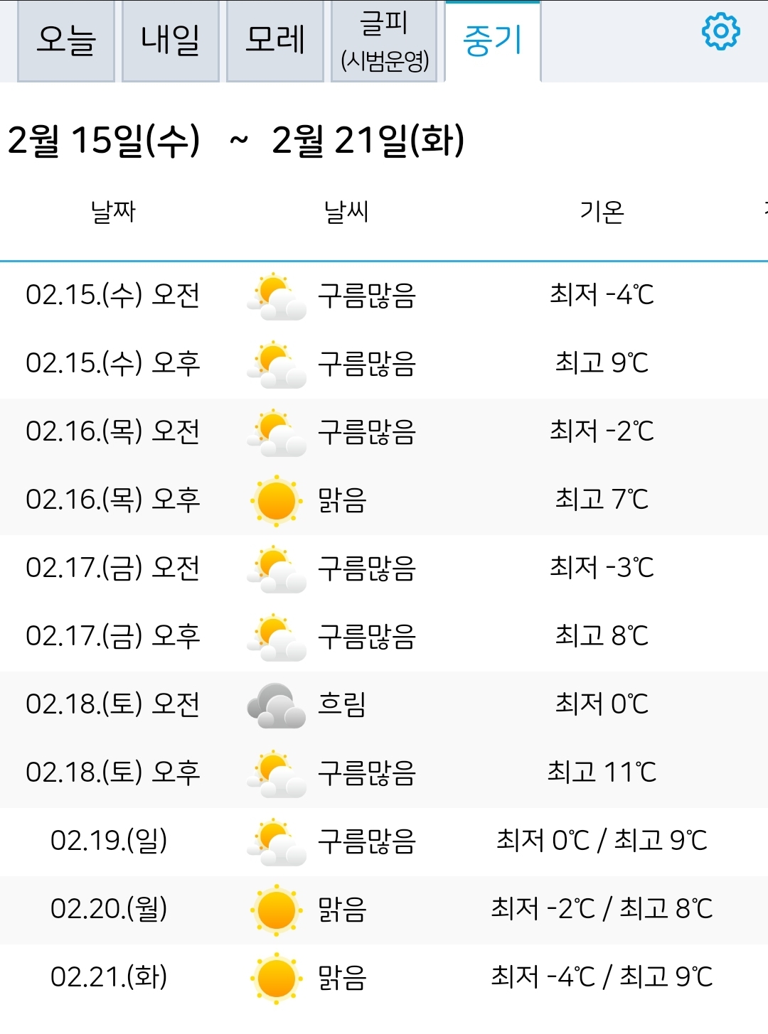2023.2.13.(월) ~ 2.21.(화) 일기예보 본문
