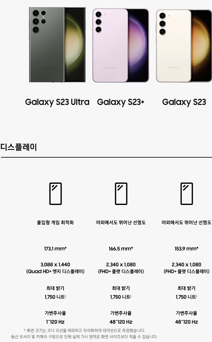 갤럭시S23 Ultra 제품정보 조금 (feat. 삼성전자 웹사이트, S23 Ultra, S23+, S23 비교표) 본문