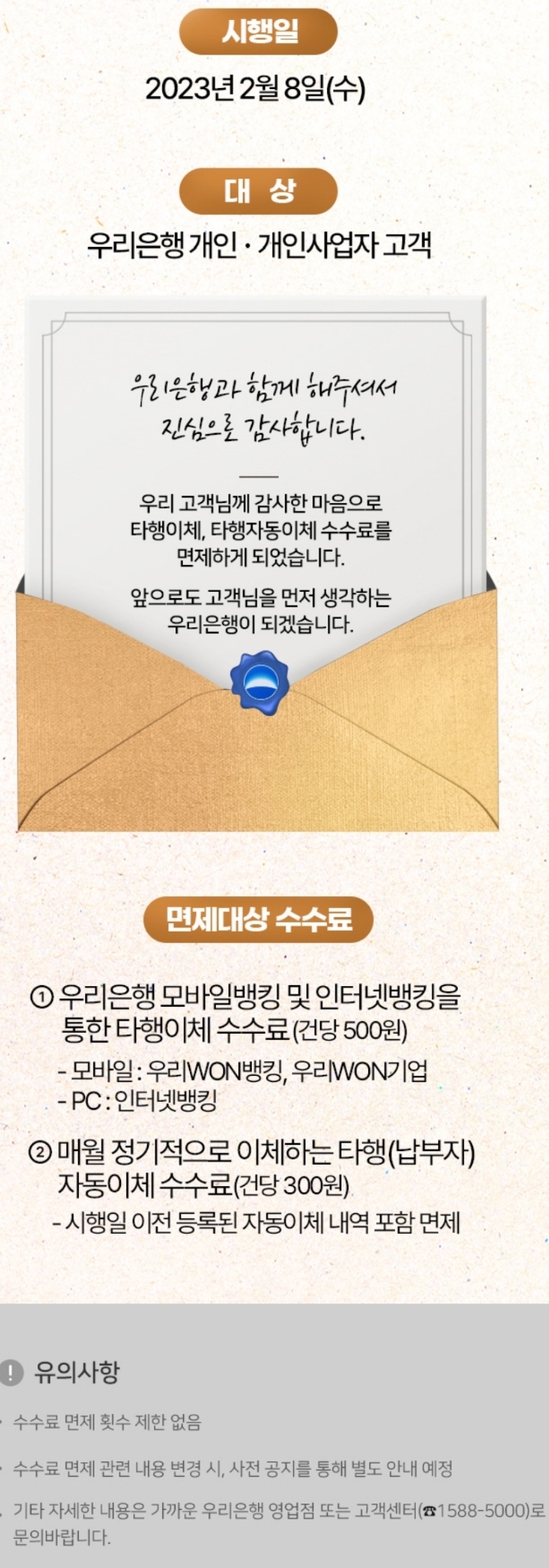 우리은행, 타행이체, 타행자동이체 수수료 무료 본문