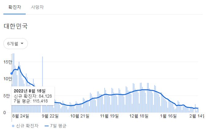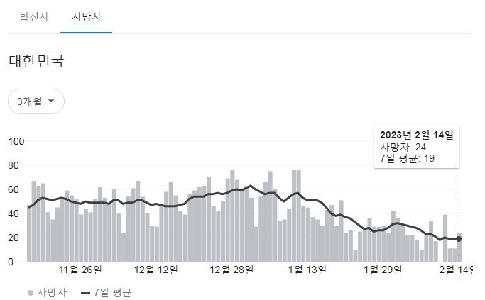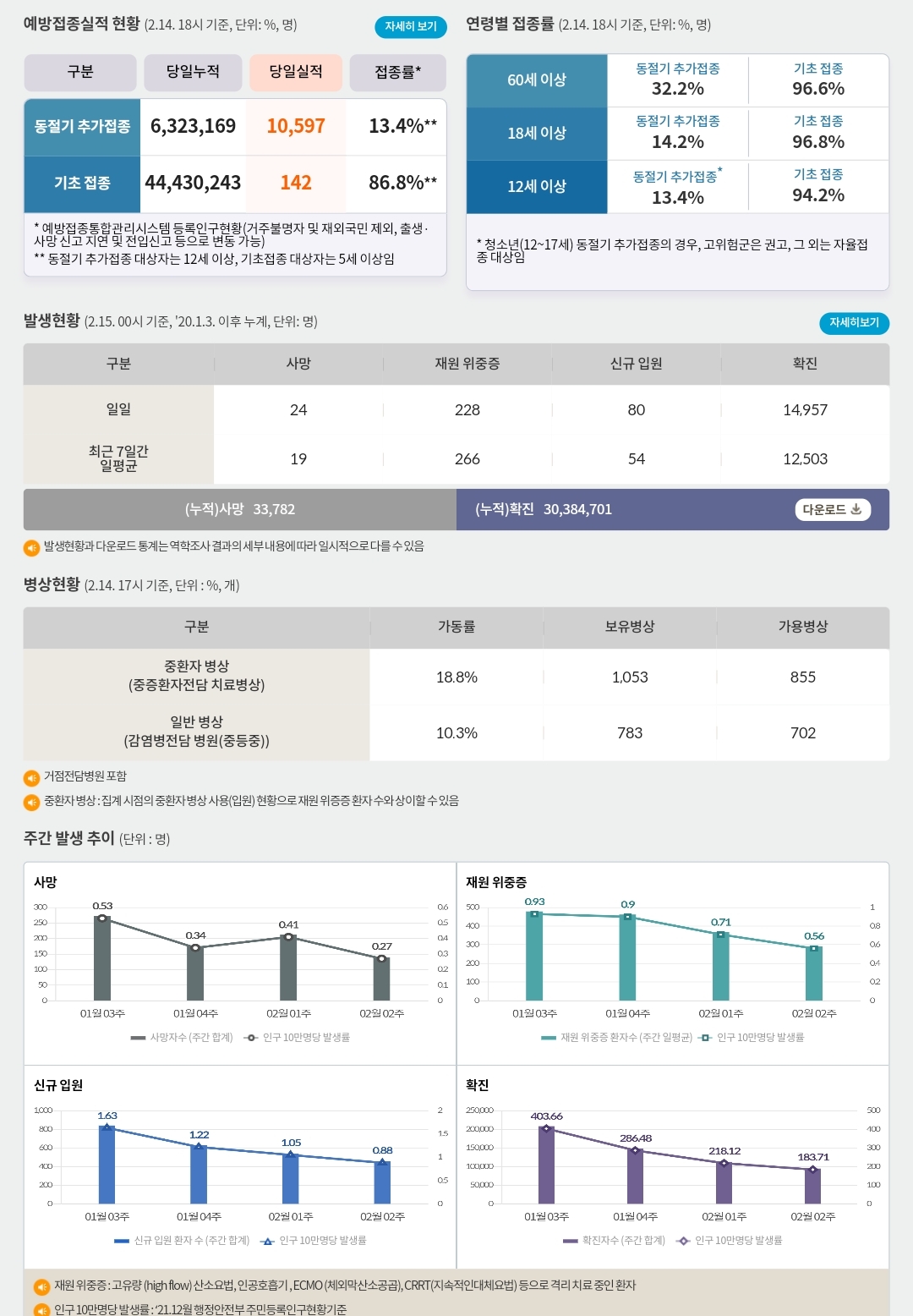 코로나19집계(2023.2.15. 0시기준) 확진 +1.5만, 사망 +24명, 중환자병상가동률 19% 본문