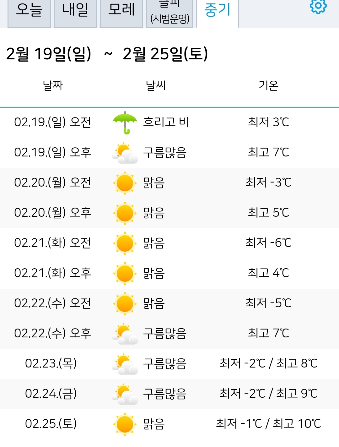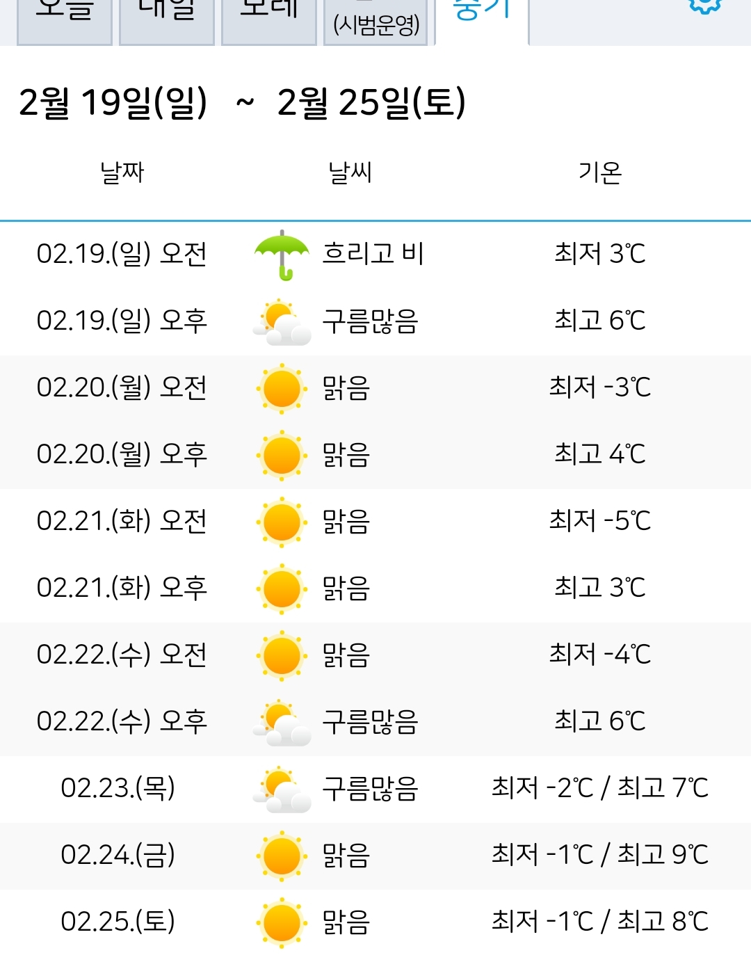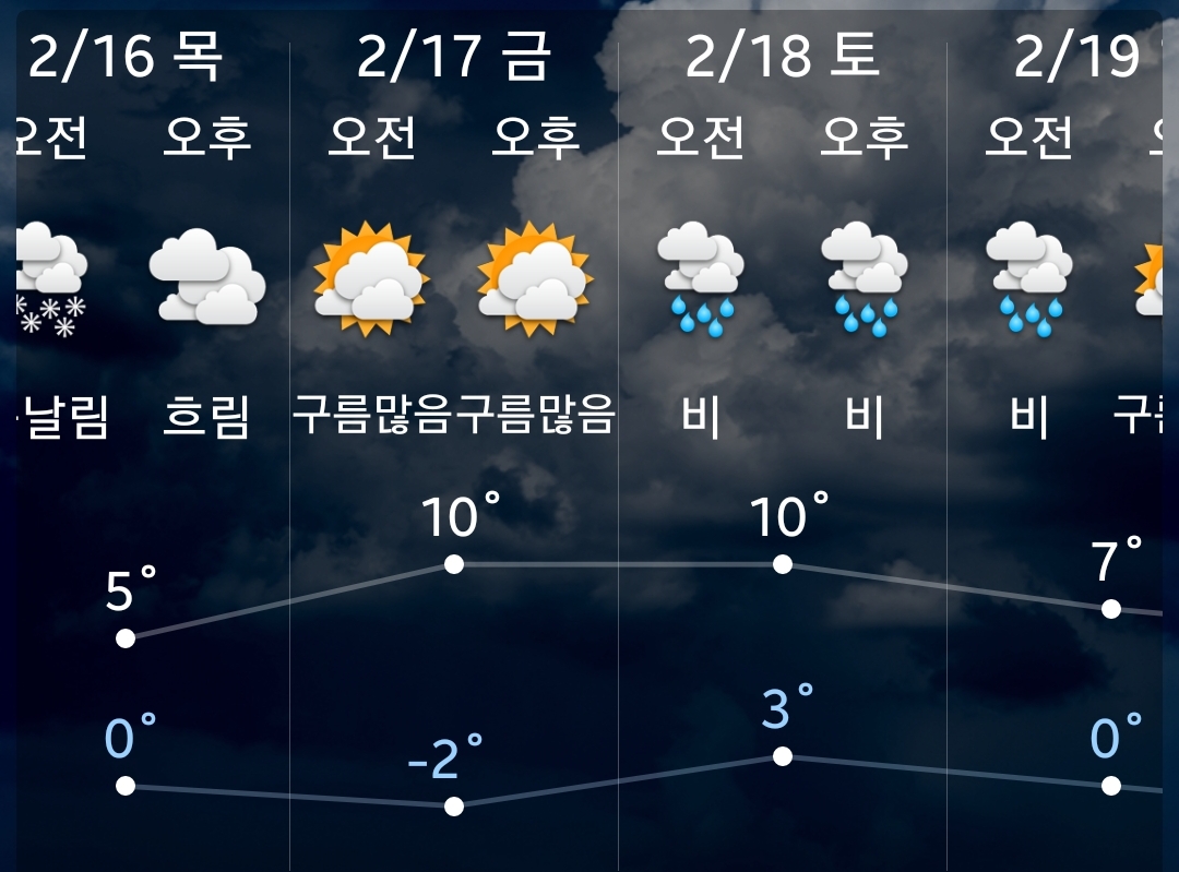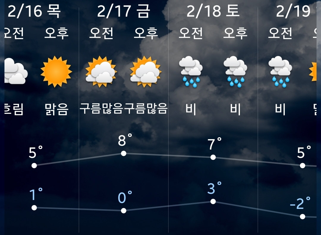 (2023.2.16~25) 금주말 비, 내주중 아침영하 3~6도 본문