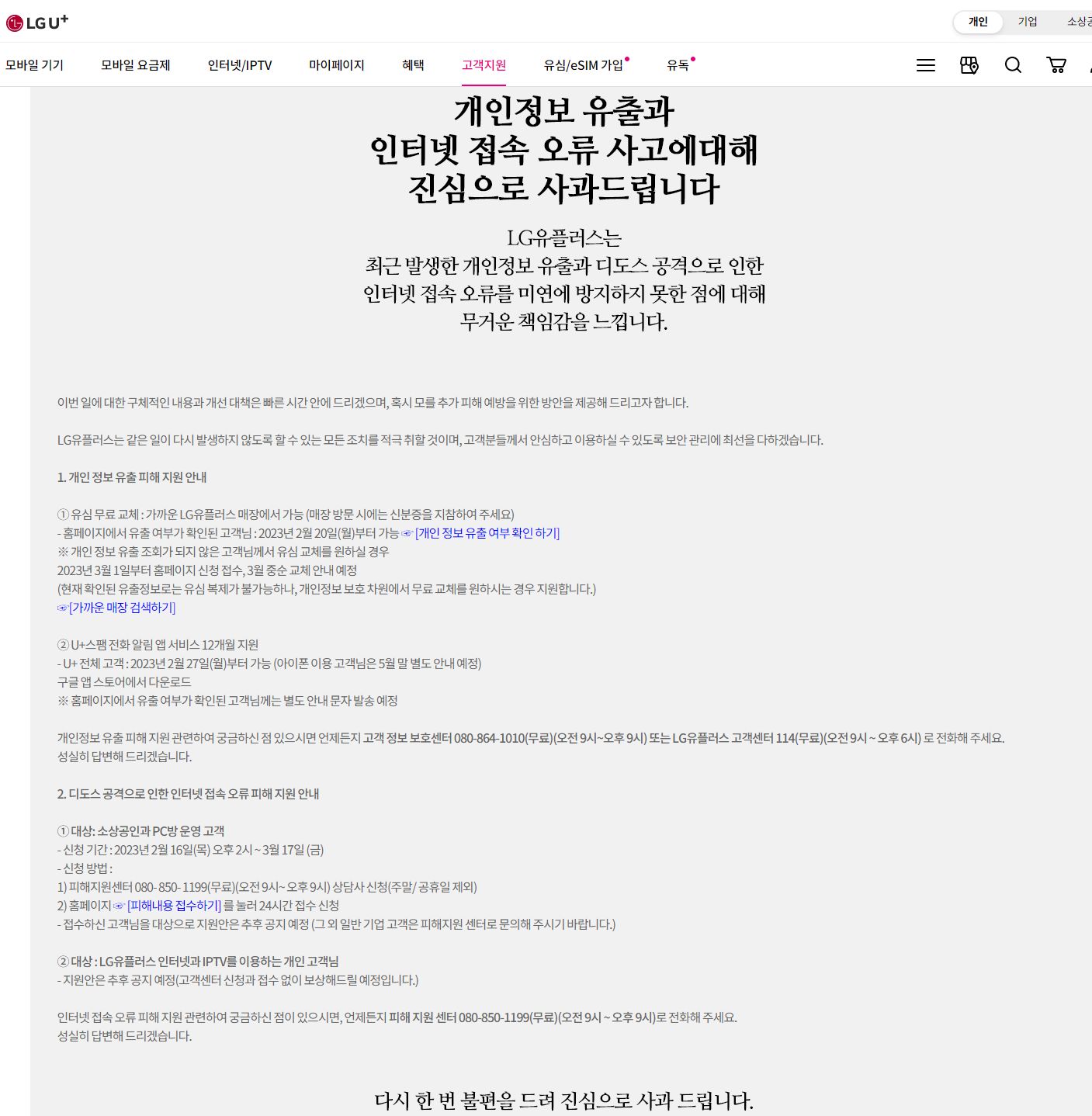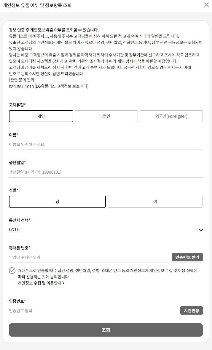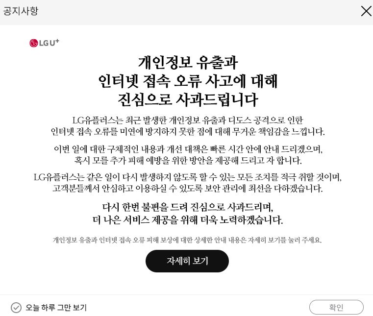 제 경우는 (LGU+가 파악한 범위 안에서는) 유출되지 않았다고.. 일단은 다행입니다만...