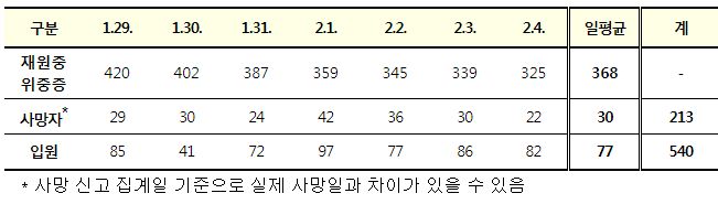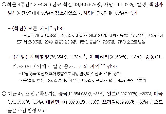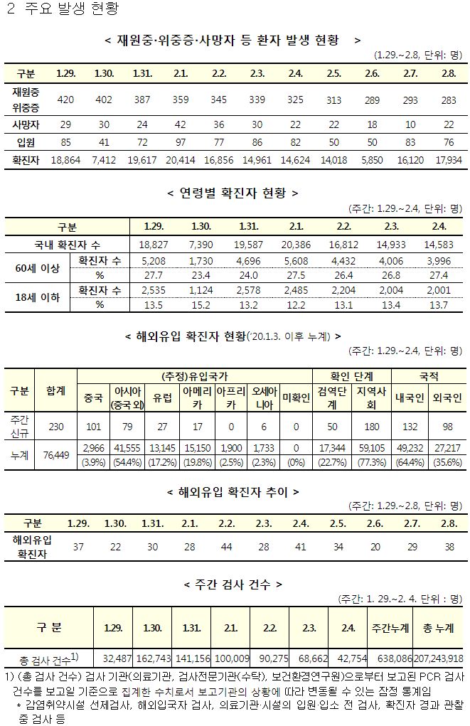 코로나19 주간 발생 동향(1. 29.∼2. 4.)