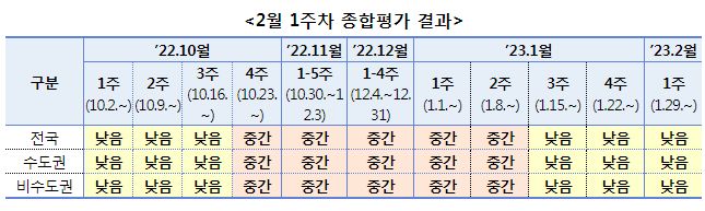 | 코로나19(2023.2.15) 주간 발생동향 및 위험도 평가(2.5.∼2.11.): 낮음 (0) | 2023.02.17 |