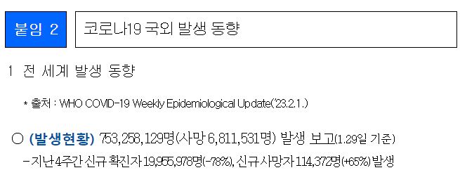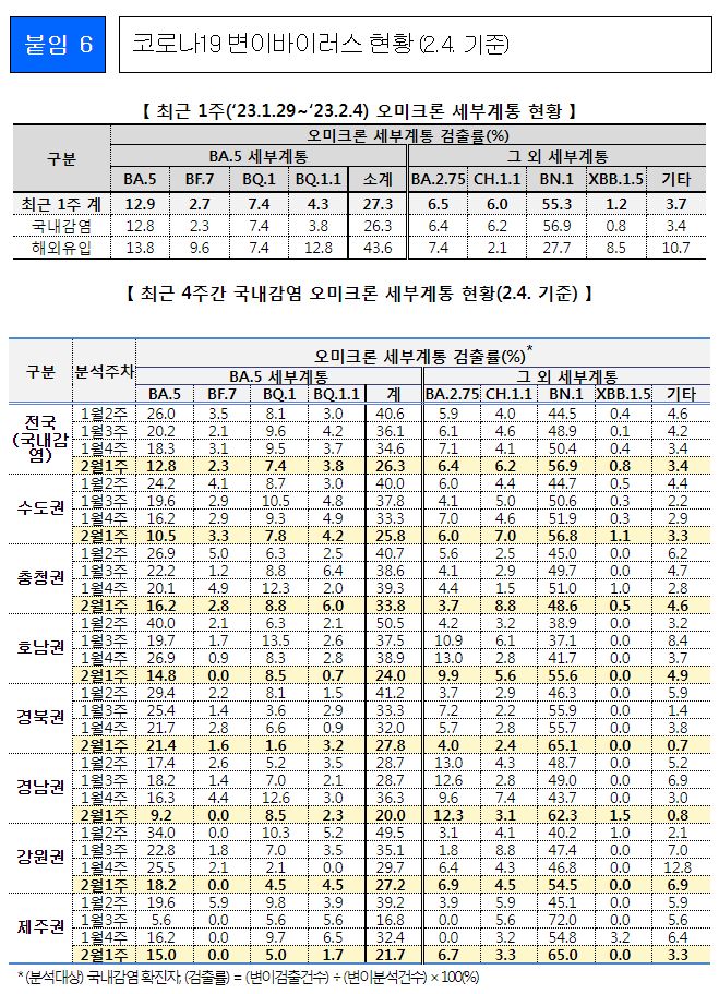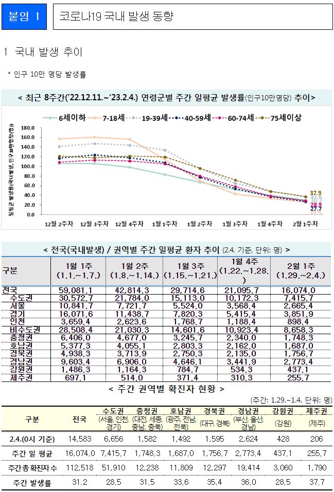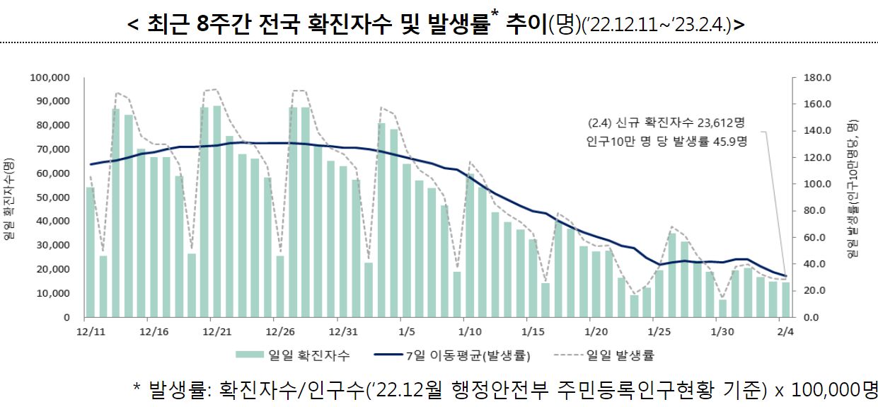 코로나19(2023.2.8.) 주간 발생 동향 및 위험도 평가(1.29.~2.4.) 본문