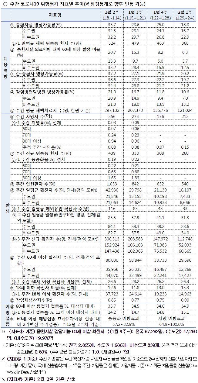 □ 코로나19 주간 발생 동향 및 위험도 평가(1.29.~2.4.)