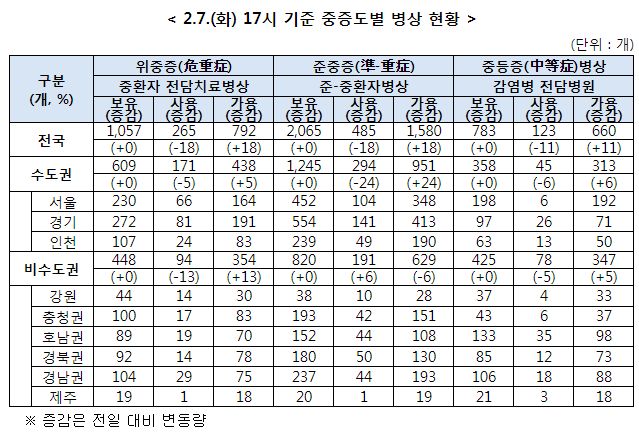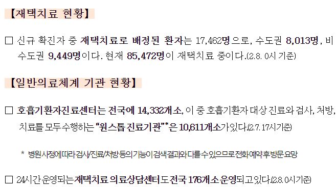 코로나19 병상 및 재택치료 등 현황