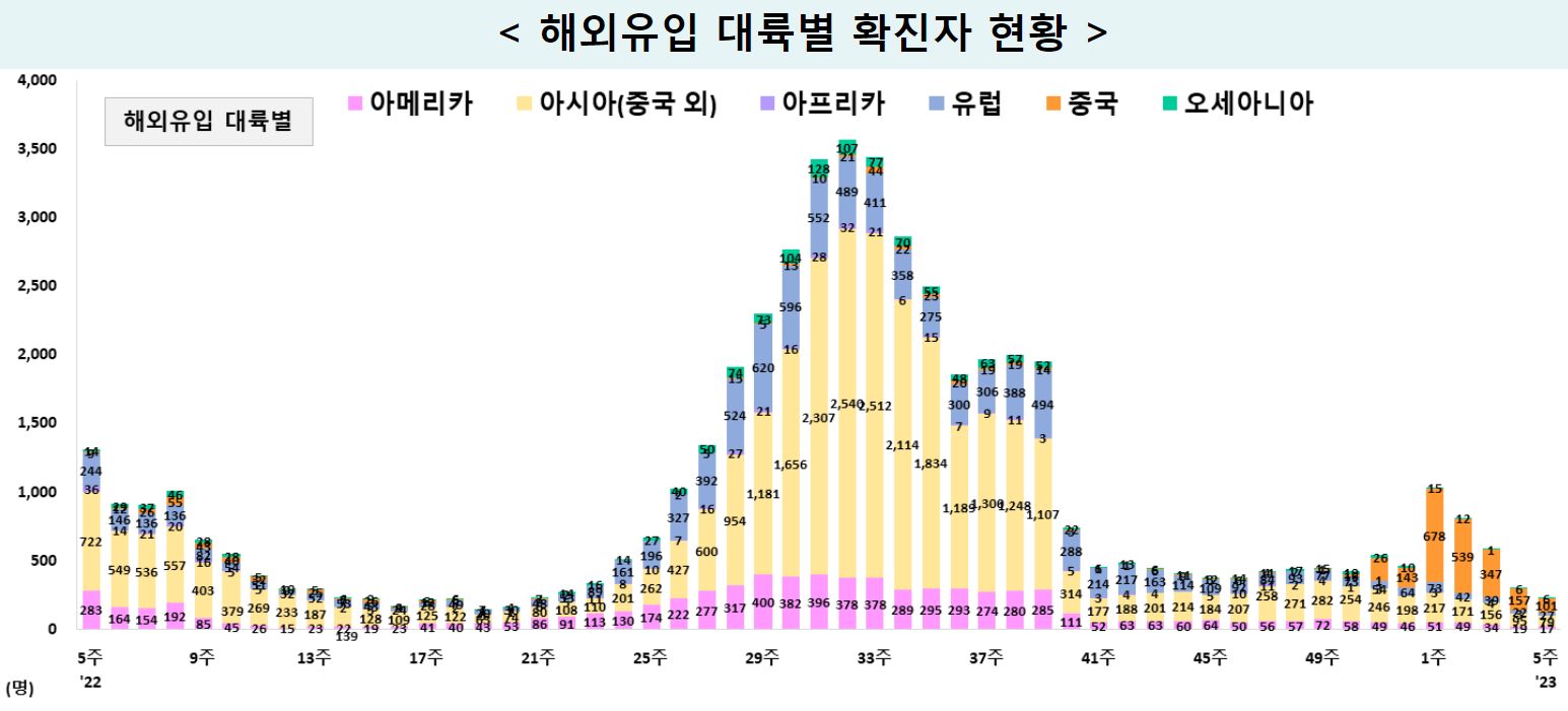 * 주간 일별 중국발 입국자 검사 현황