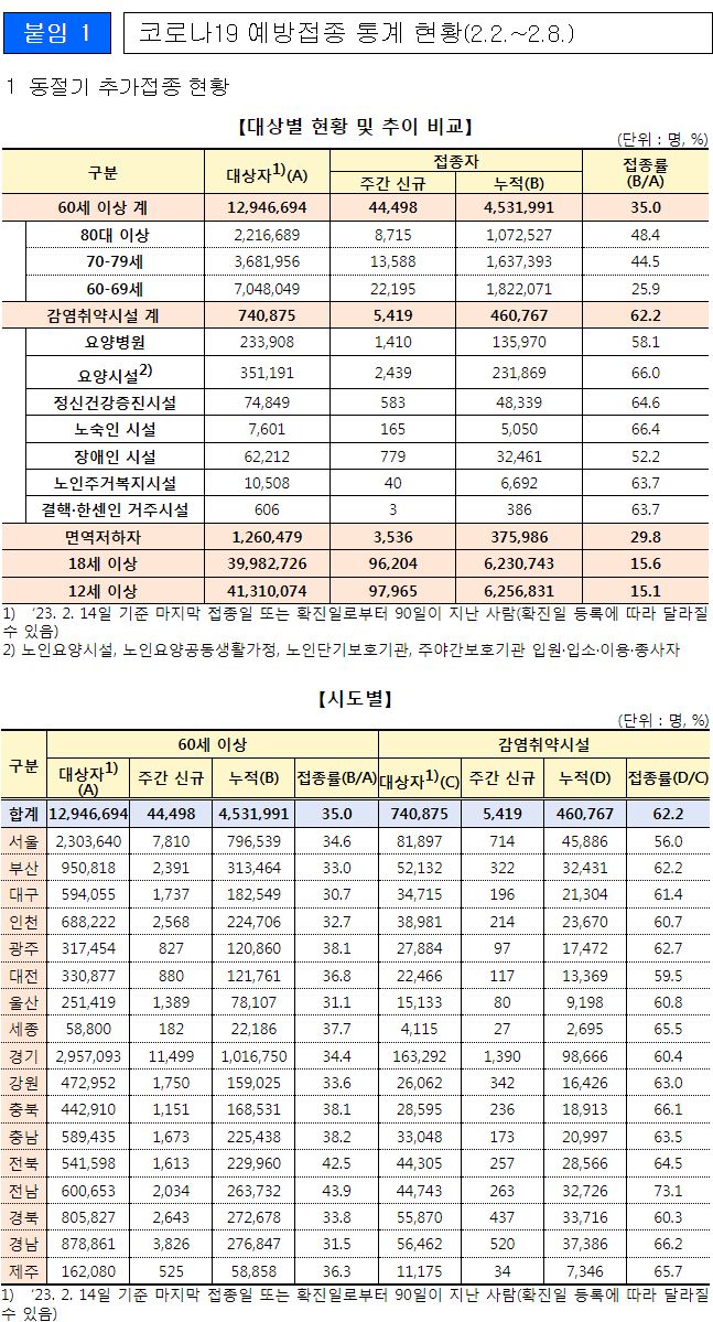 코로나19(2023.2.9) 2가백신 접종 후 능동감시 시행 결과/:/주간 예방접종통계/:/예방접종안내포스터 본문