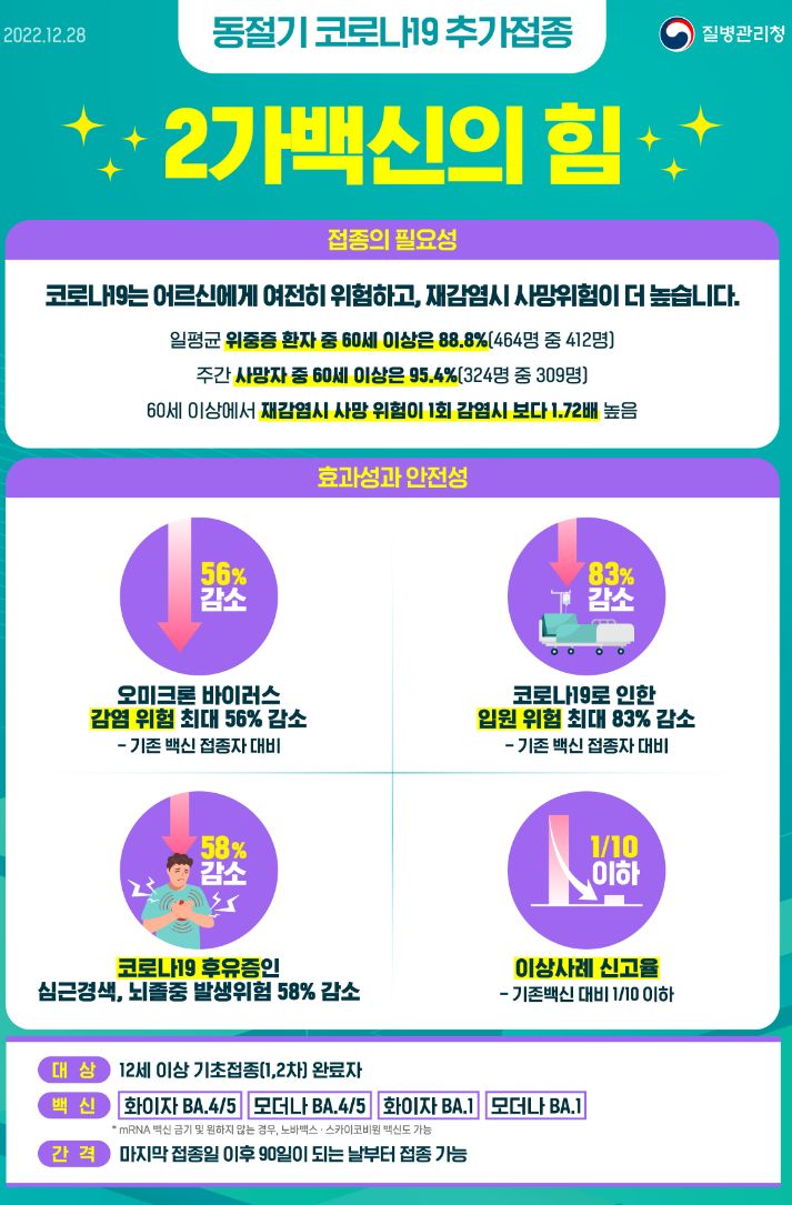 | 코로나19(2023.2.16) 60세 이상 코로나19 동절기 추가접종권장. 인플루엔자(계절독감)는 겨울이지만, 코로나19는 봄에도 계속 (0) | 2023.02.17 |