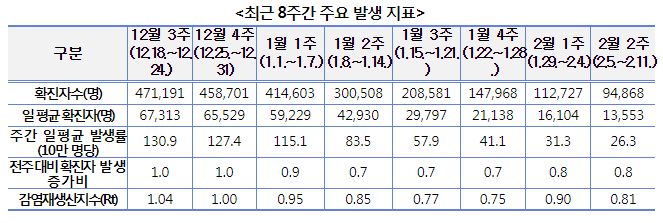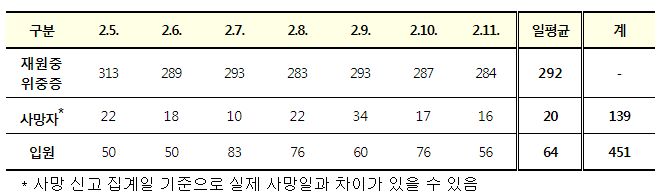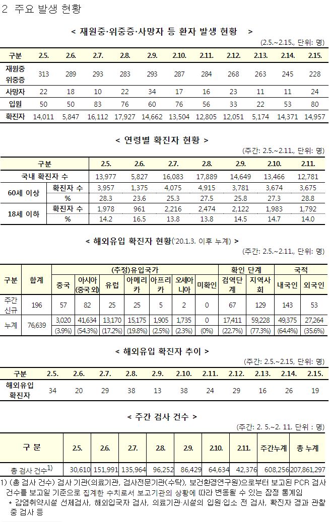 코로나19 주간 발생 동향(2.5.∼2.11.)