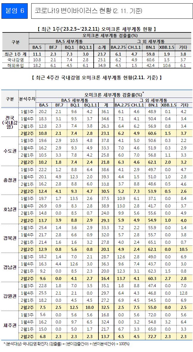 코로나19(2023.2.15) 주간 발생동향 및 위험도 평가(2.5.∼2.11.): 낮음 본문