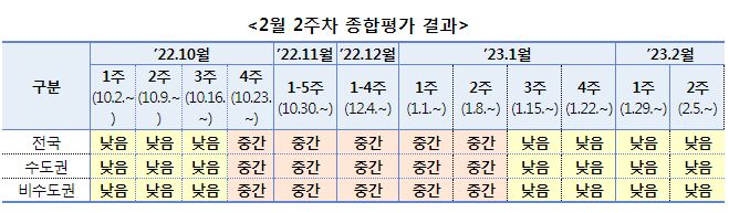 - 주간 위험도 전국, 수도권, 비수도권 모두‘낮음’으로 유지 -