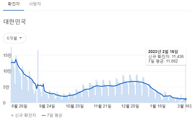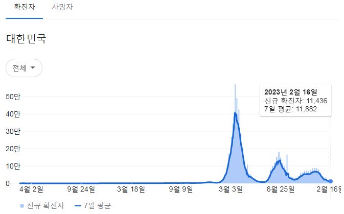 질병관리청의 오늘 발표는 구글그래프에는 저녁쯤에 반영됩니다.