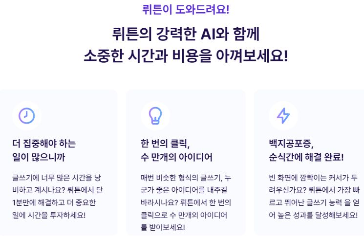뤼튼 - AI 콘텐츠 생성 플랫폼 | 고객의 반응을 얻고 매출을 늘리는 경쟁력 있는 카피, 강력한 AI와 함께 10배 빠르게 완성하세요.