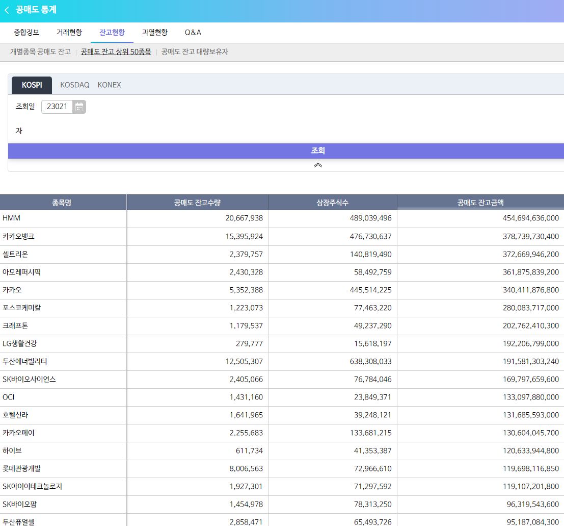 공매도, 외국인 공매도동향 기사 하나와 링크 몇 개/:/ KRX공매도 잔고 통계 본문