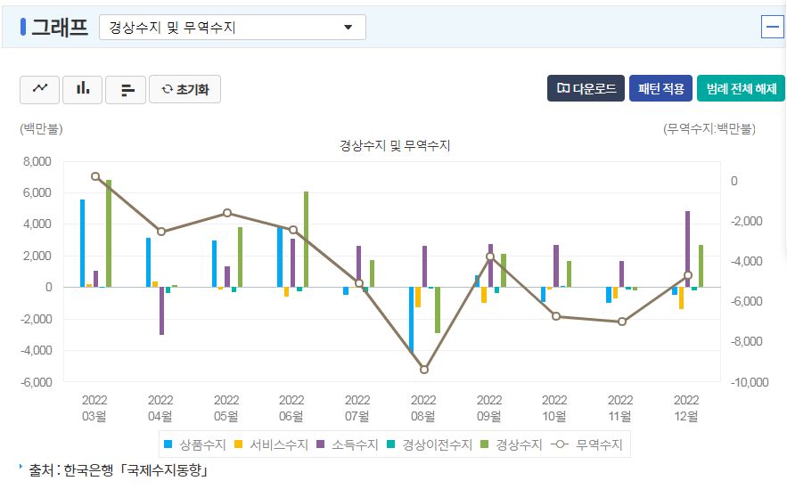 그리고 중국의 경제구조 자립 양상과 함께 미국의 중국 경제제재라고 불러도 될 조치들까지 늘어나면서, 우리나라의 vs중국무역적자가 작년부터 시작됐나?3 그리고 전체적인 상품수지 무역적자가 이어지고 있다. 이 부분이 환율에 영향을 줬을 것이다. 이것은 우리나라의 국가전략과 수출산업구조를 바꾸는 데 성공해야 해결되는 부분이다.