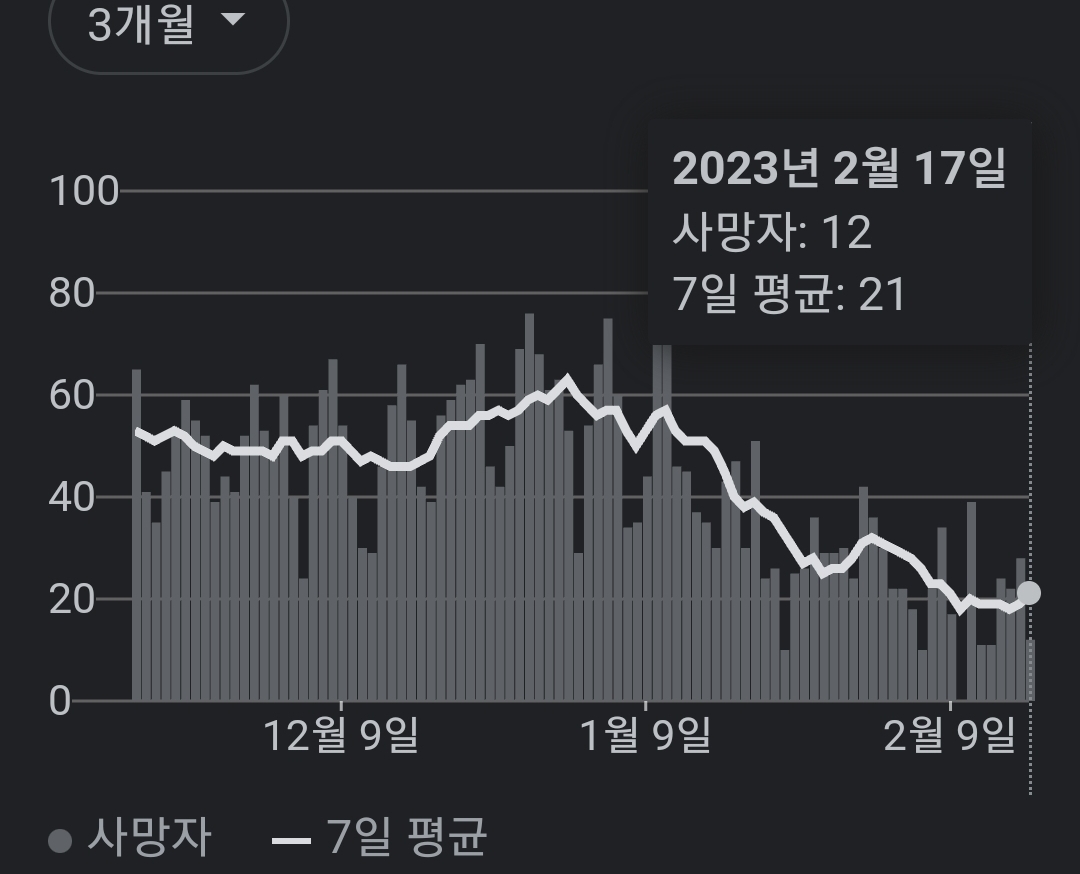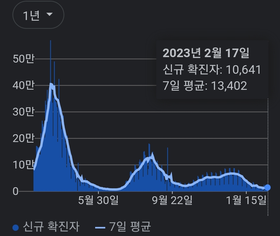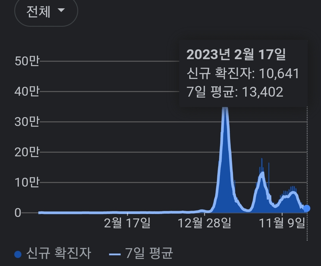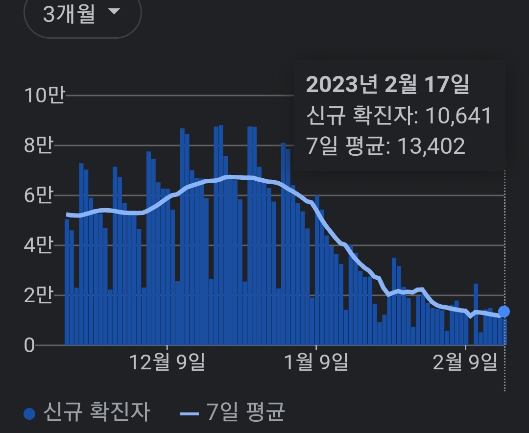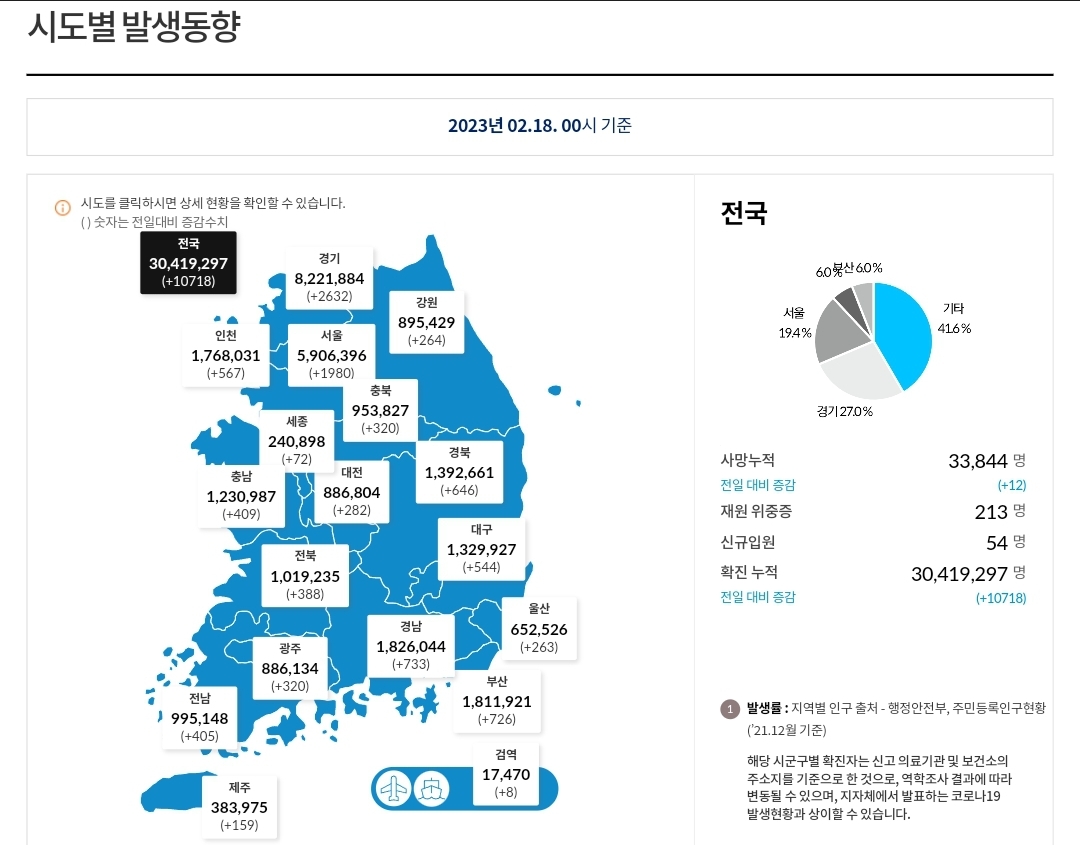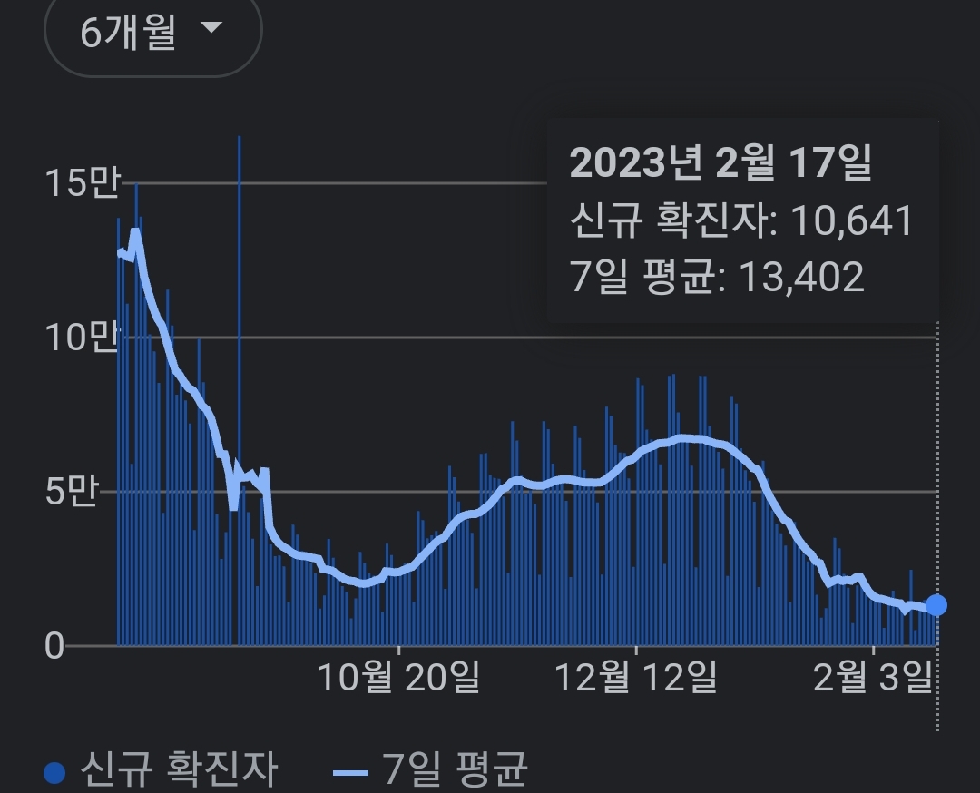 | 코로나19집계(2023.2.17. 0시기준) 확진 +1.1만, 사망 +28명, 중환자병상가동률 18% (0) | 2023.02.17 |