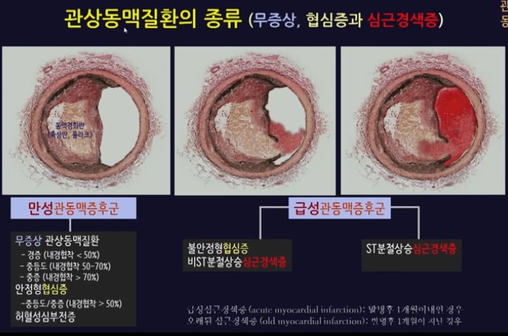 혈관이 50%나 막히는 심각한 상황에도 증상이 없다(무증상). 아프면 그건 진짜 위험한 거..