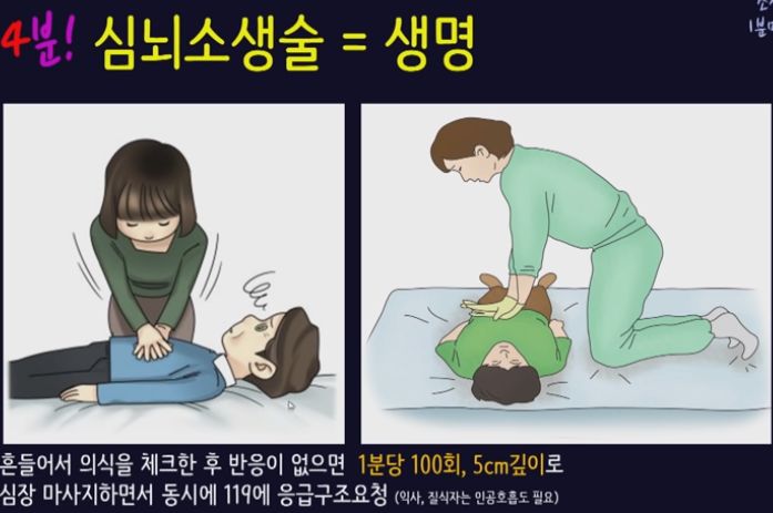 ㅡ 심정지환자를 발견하면 즉시 심장마사지를 시행하면서 응급구조를 요청해야 치명적인 뇌손상을 예방할 수 있다.