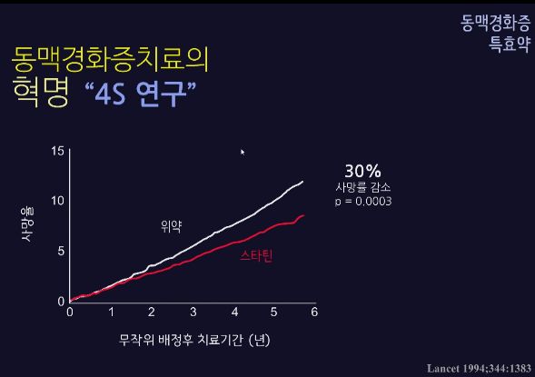 4S 임상연구: 협심증과 심근경색을 앓은 사람들 4천여 명에게 처방. 효과를 확인.