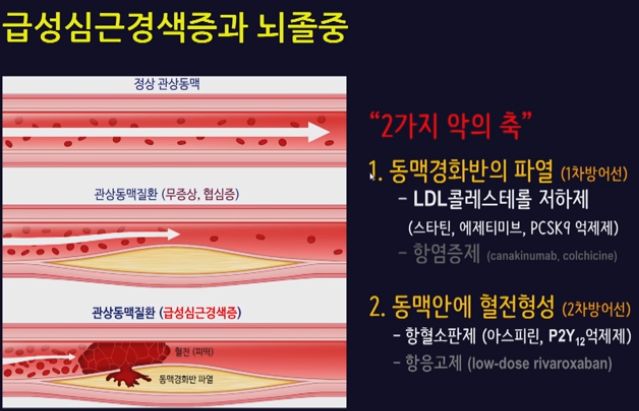 ㅡ 급성관동맥증후군은 쌓인 콜레스테롤찌꺼기때문에 만들어진 염증이 터질 때 피가 나오면 핏속 혈소판이 지혈하려고 막는데 그게 혈관을 막는 게 돼버리는 급성질환, 초응급질환.