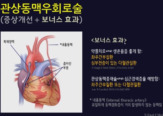 이건 큰 수술이기 때문에 좌심실의 관상동맥에 문제가 있을 때 주로 쓴다.