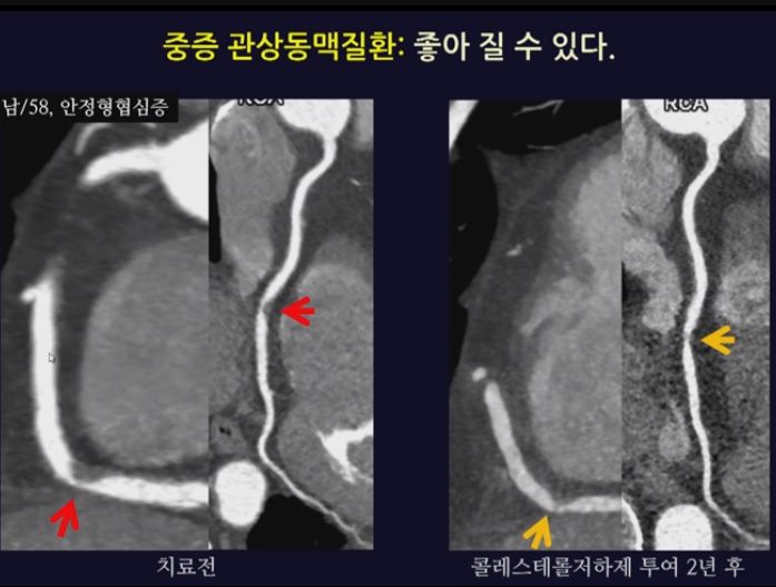 ㅡ 동맥경화증은 콜레스테롤(원인) 수치를 낮추면 좋아질 수 있으며, 심뇌혈관을 포함한 모든 동맥의 예방/치료효과가 있다.