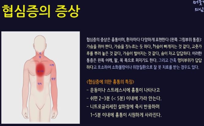 협심증의 증상은 다양하다. 오해할 수 있다. 아파서 어디 가서 치료했는데 여전하면 의심할 것.