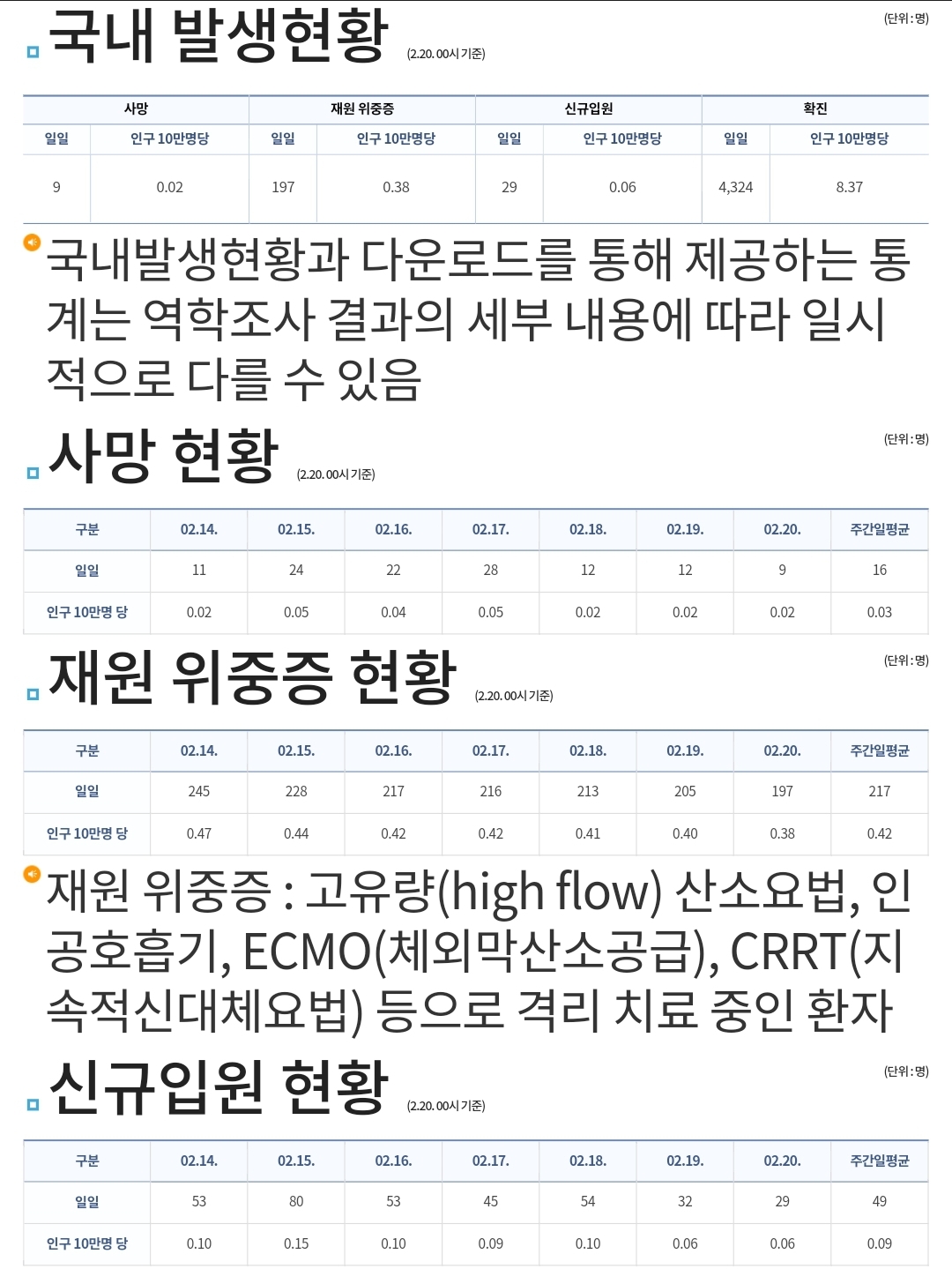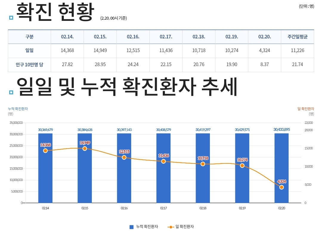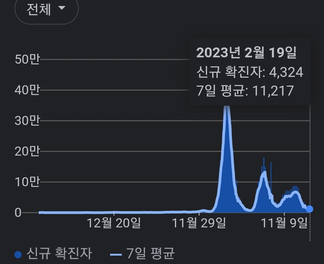 코로나19집계(2023.2.20. 0시기준) 확진 +4천, 사망 +9명, 중환자병상가동률 18% 본문