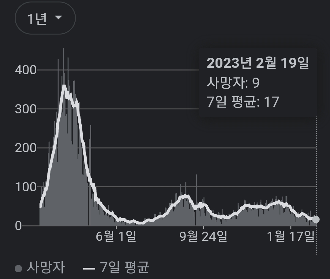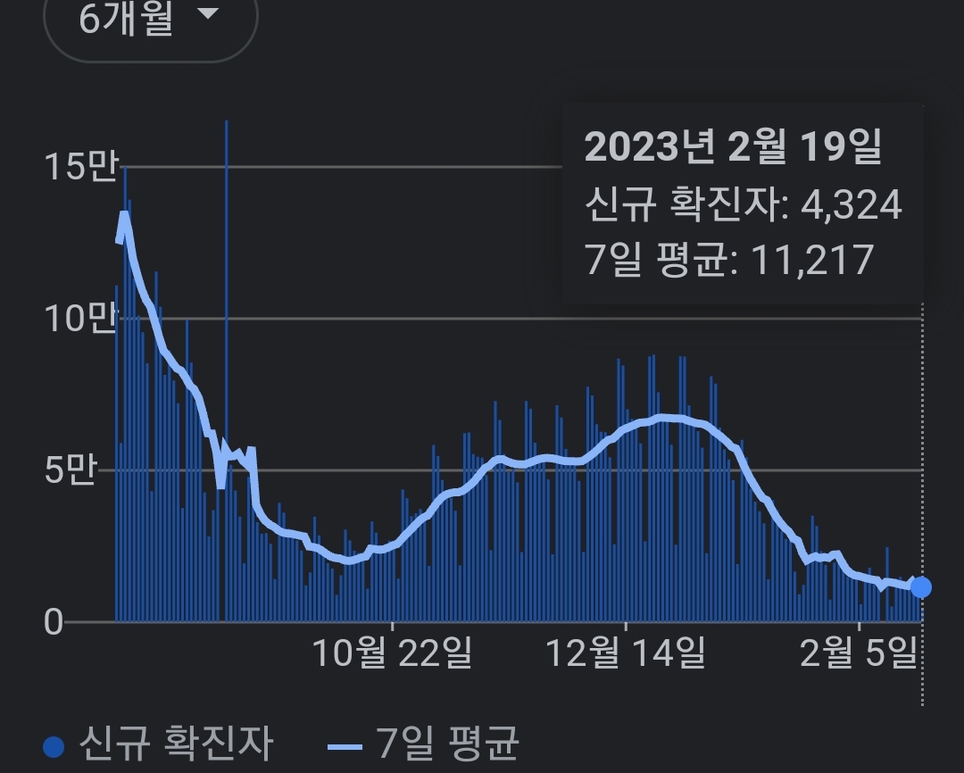 | 코로나19집계(2023.2.17. 0시기준) 확진 +1.1만, 사망 +28명, 중환자병상가동률 18% (0) | 2023.02.17 |