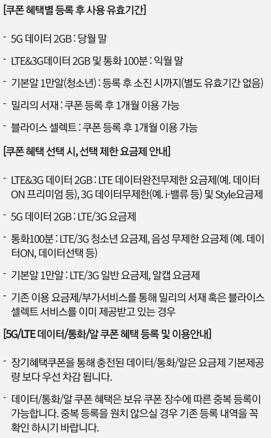 (단, 등록하고 사용해야지, 통화/데이터 기본제공량을 넘게 쓴 다음 등록한다고 소급적용되지는 않습니다)