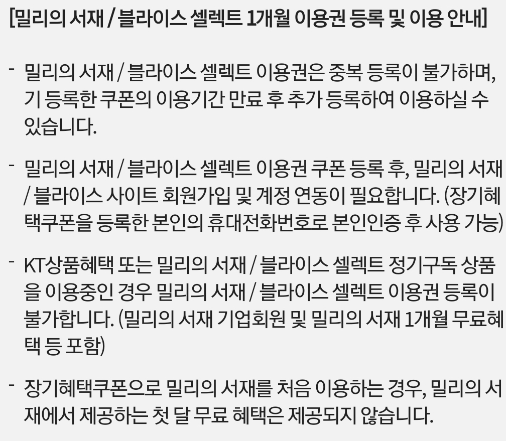요즘은 밀리의 서재 1개월권, 블라이스 셀렉트 1개월권으로도 쓸 수 있네요.