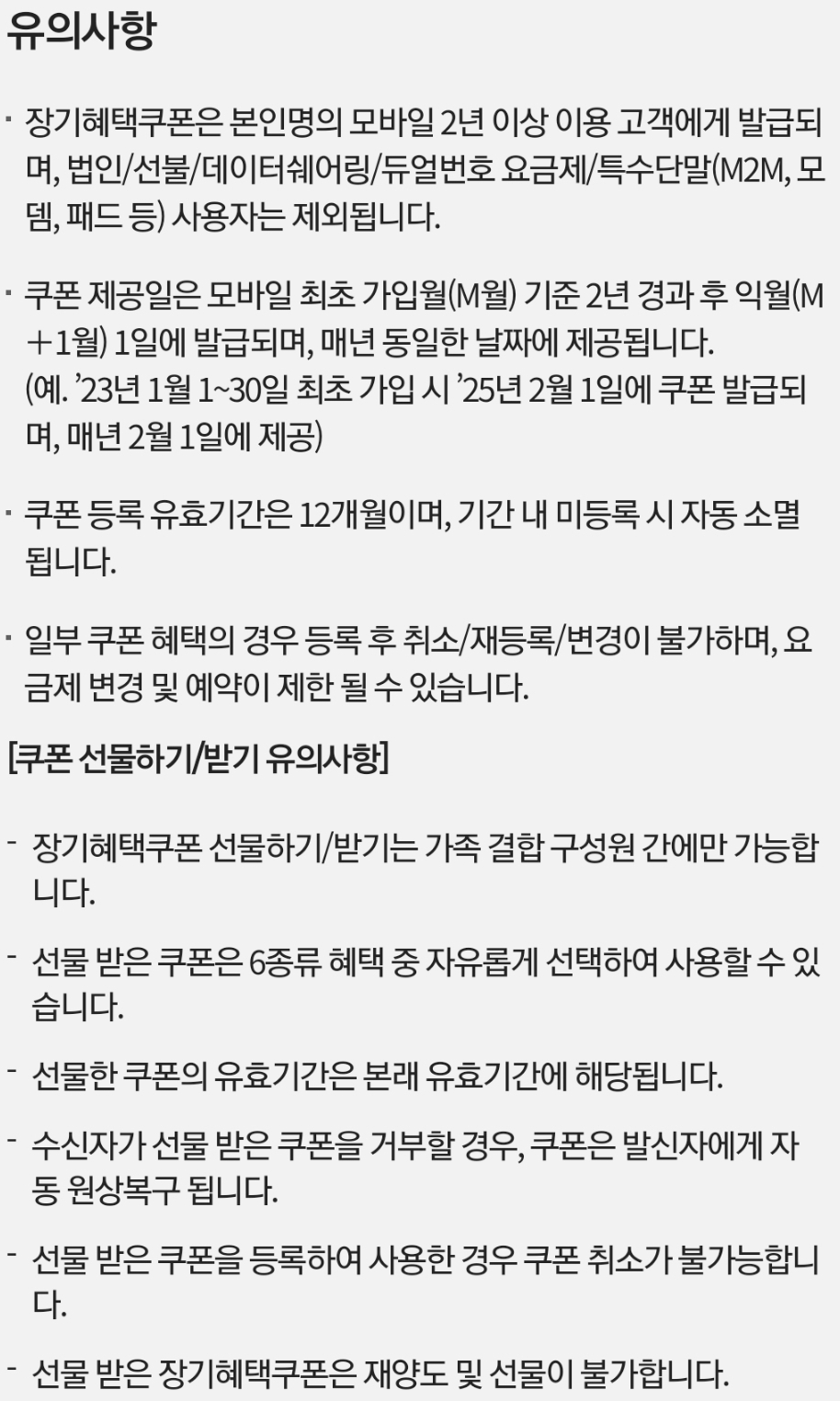KT 이동통신 가입자 장기혜택쿠폰 설명(2023) 본문