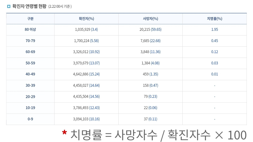 | 코로나19집계(2023.2.26. 0시기준) 확진자 +9천, 중환자병상가동률 15% (0) | 2023.02.26 |