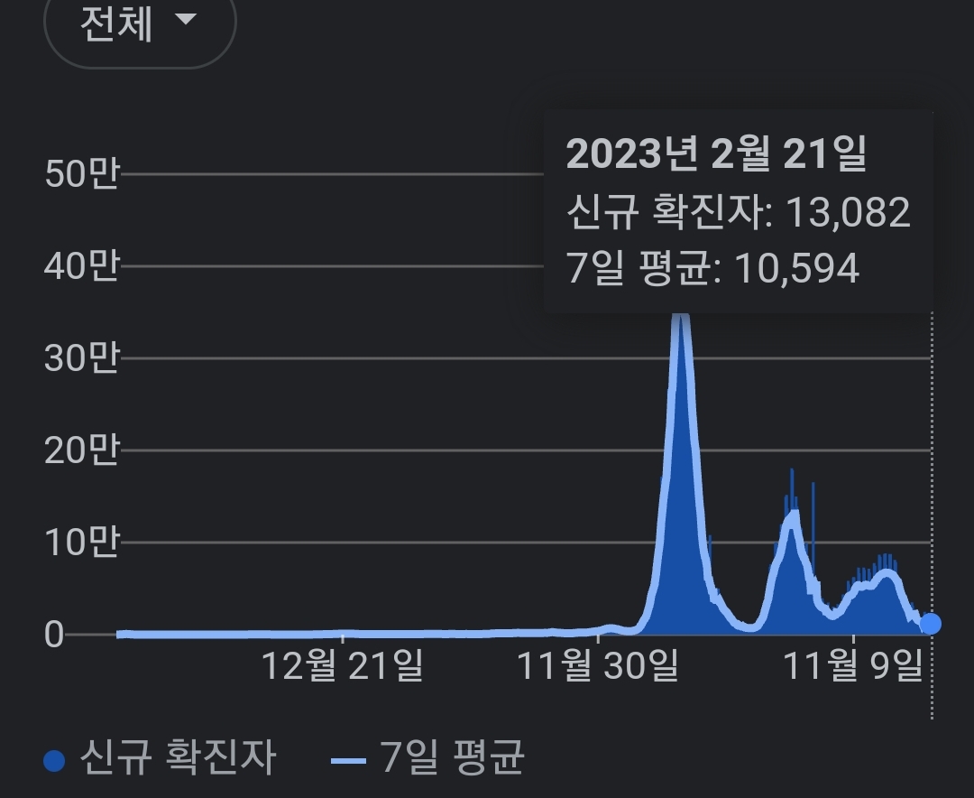 | 코로나19집계(2023.2.20. 0시기준) 확진 +4천, 사망 +9명, 중환자병상가동률 18% (0) | 2023.02.20 |